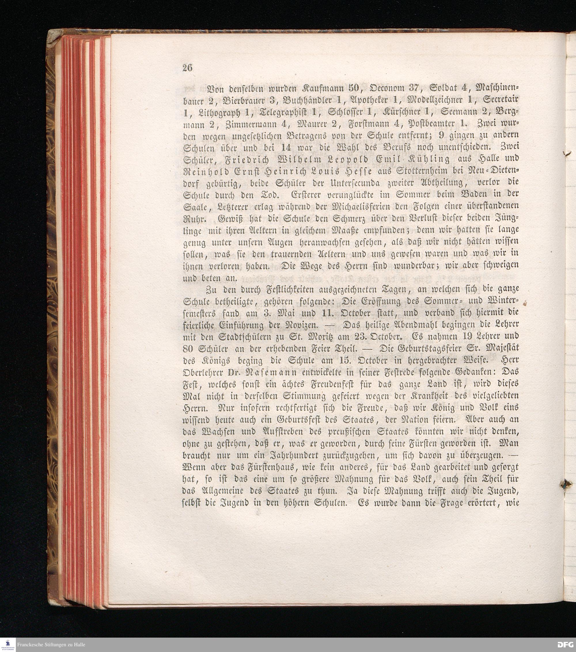 Zu der öffentlichen Prüfung, welche mit den Zöglingen der Realschule I. Ordnung im Waisenhause zu Halle am ... in dem Versammlungssaale des neuen Realschulgebäudes veranstaltet werden soll, werden ... eingeladen.