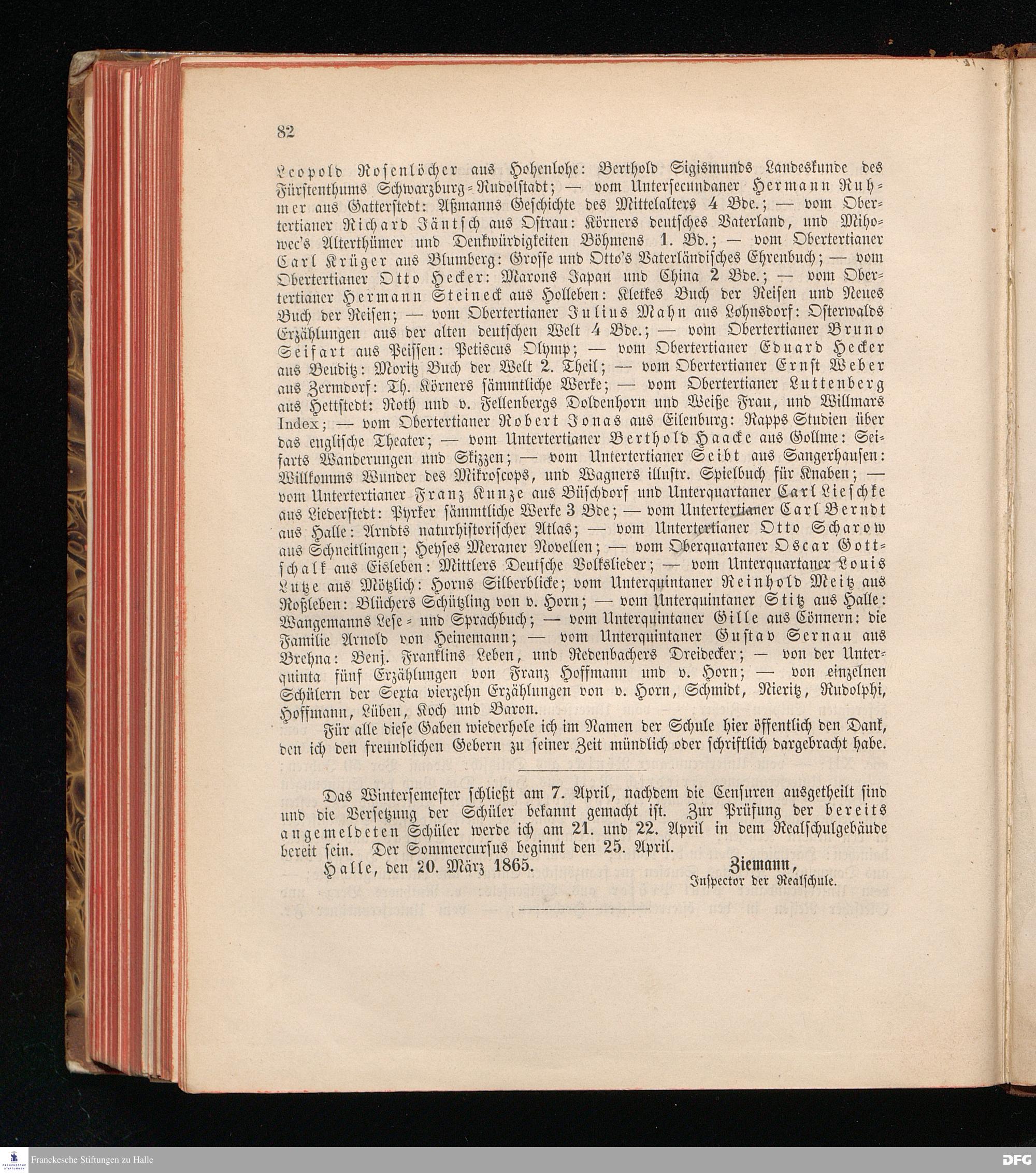 Zu der öffentlichen Prüfung, welche mit den Zöglingen der Realschule I. Ordnung im Waisenhause zu Halle am ... in dem Versammlungssaale des neuen Realschulgebäudes veranstaltet werden soll, werden ... eingeladen.