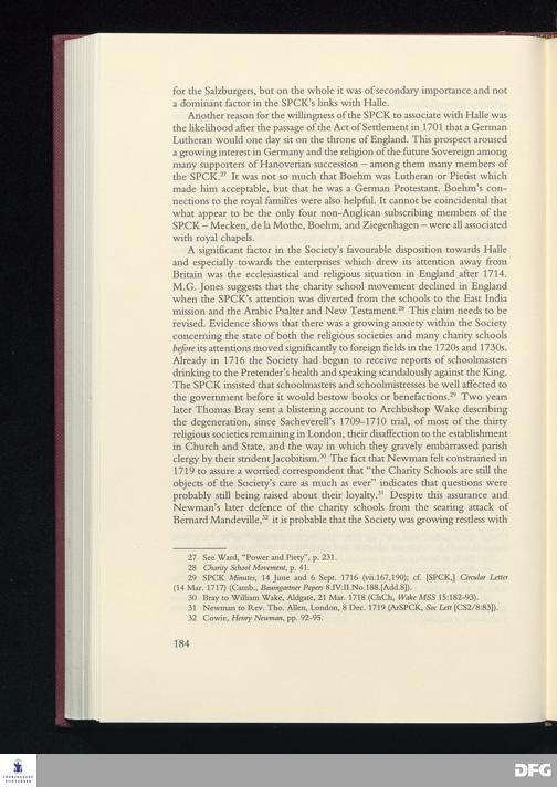 Halle Pietists in England. Anthony William Boehm and the Society for Promoting Christian Knowledge.