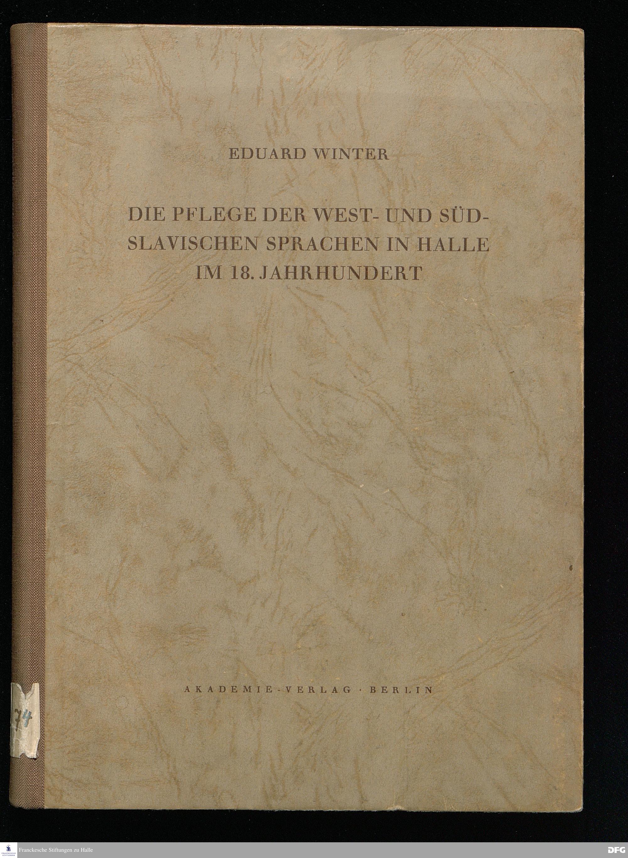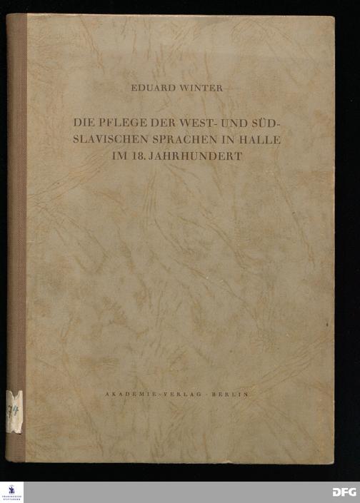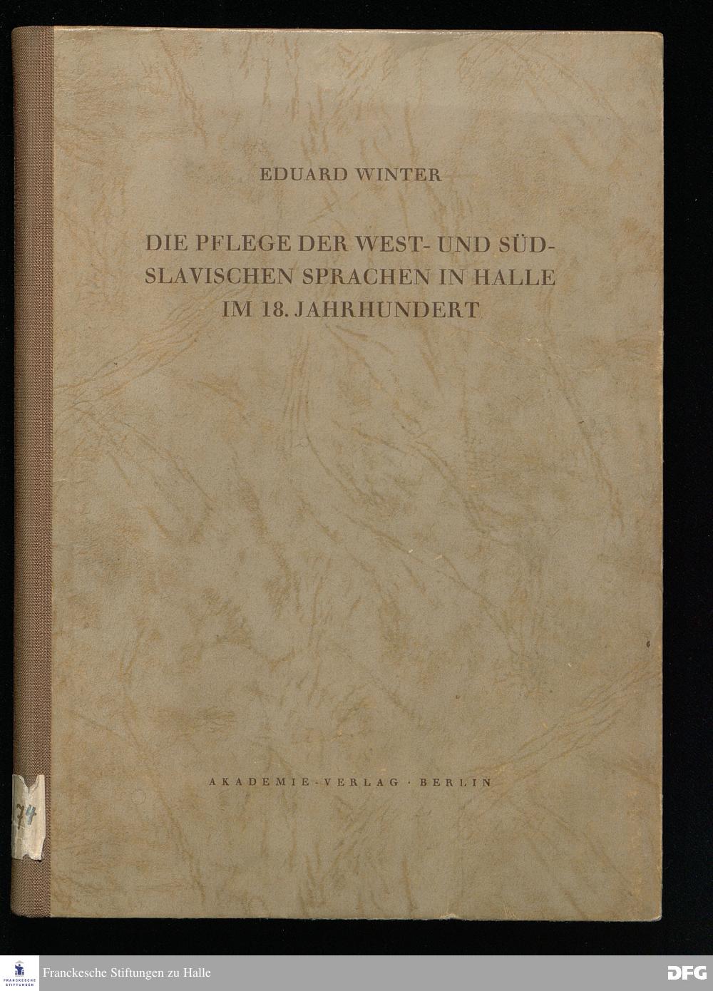 Die Pflege der west- und südslavischen Sprachen in Halle im 18. Jahrhundert. Beiträge zur Geschichte des bürgerlichen Nationwerdens der west- und südslavischen Völker.