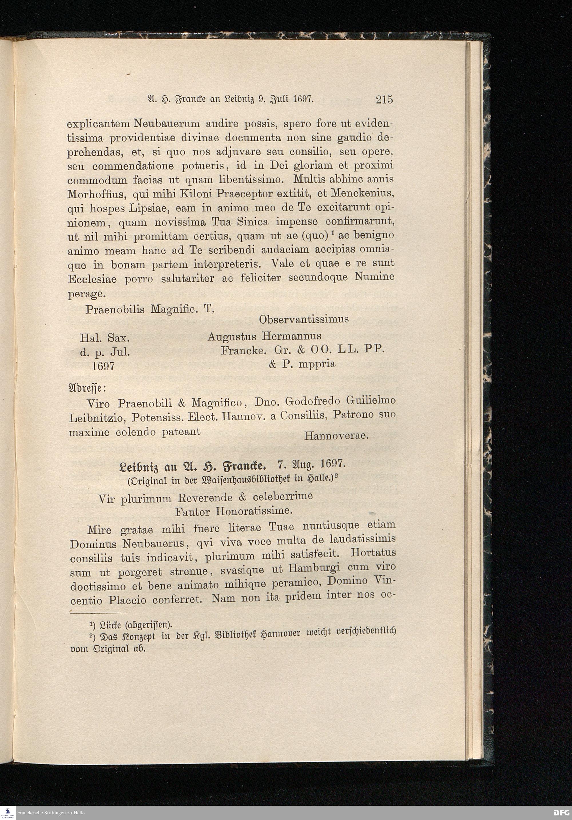 Anhang I. Unveröffentlichter Briefwechsel zwischen Leibniz und A. H. Francke aus den Jahren 1697-1699.