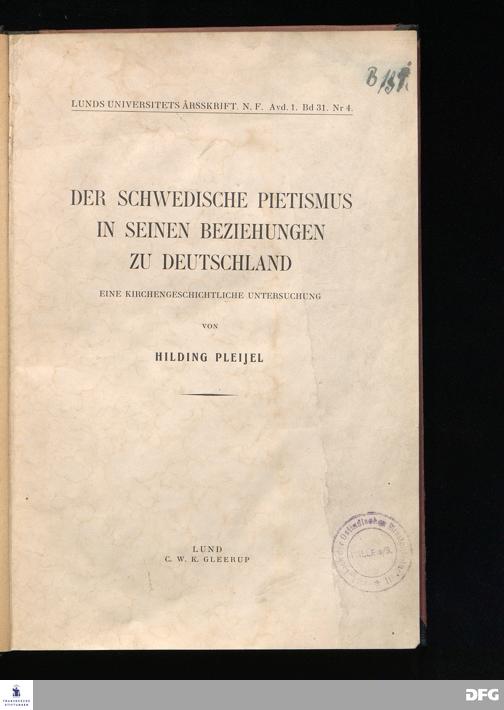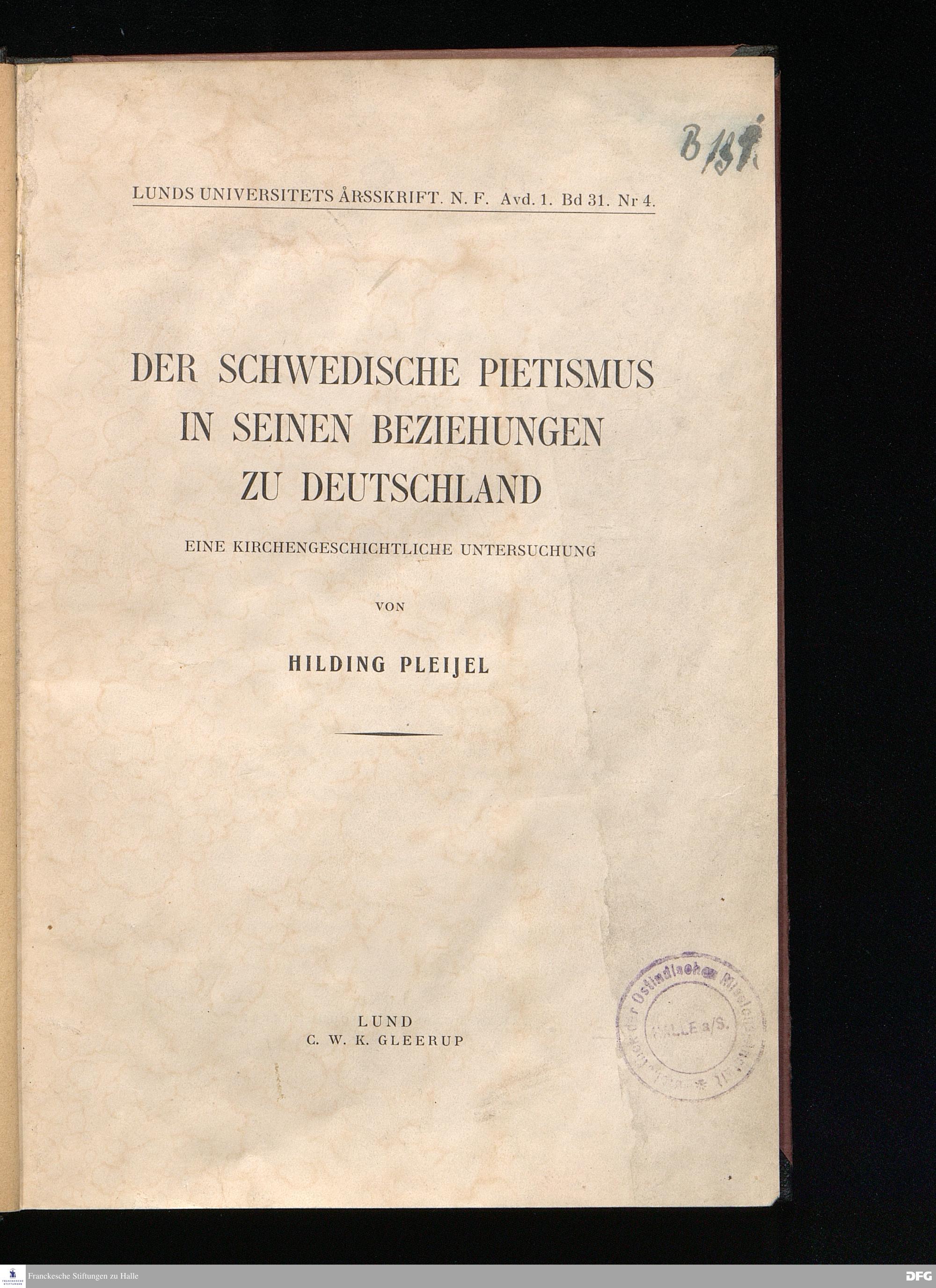 Der schwedische Pietismus in seinen Beziehungen zu Deutschland. Eine kirchengeschichtliche Untersuchung.