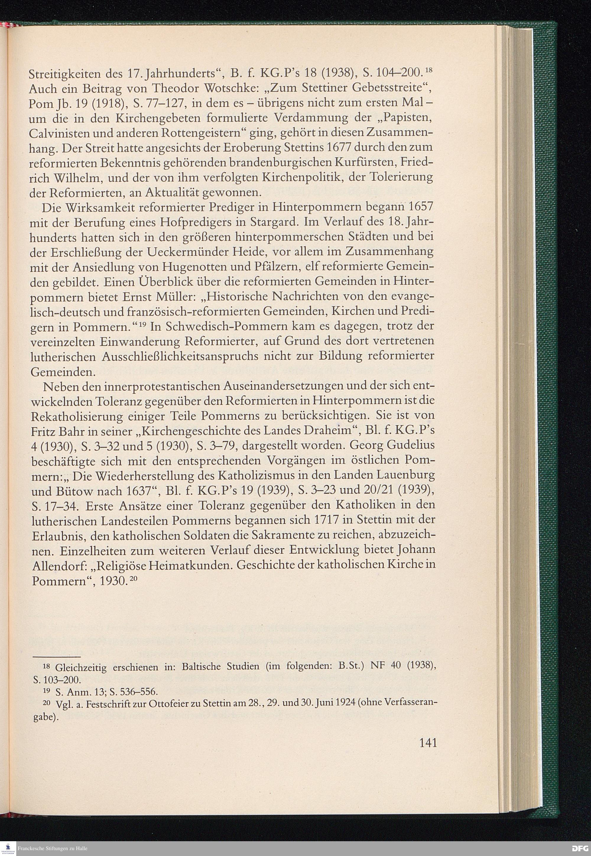 Pietismus und Neuzeit - ein Literaturbericht für den Bereich der pommerschen Kirche, vor allem für das Gebiet der heutigen Evangelischen Landeskirche Greifswald.
