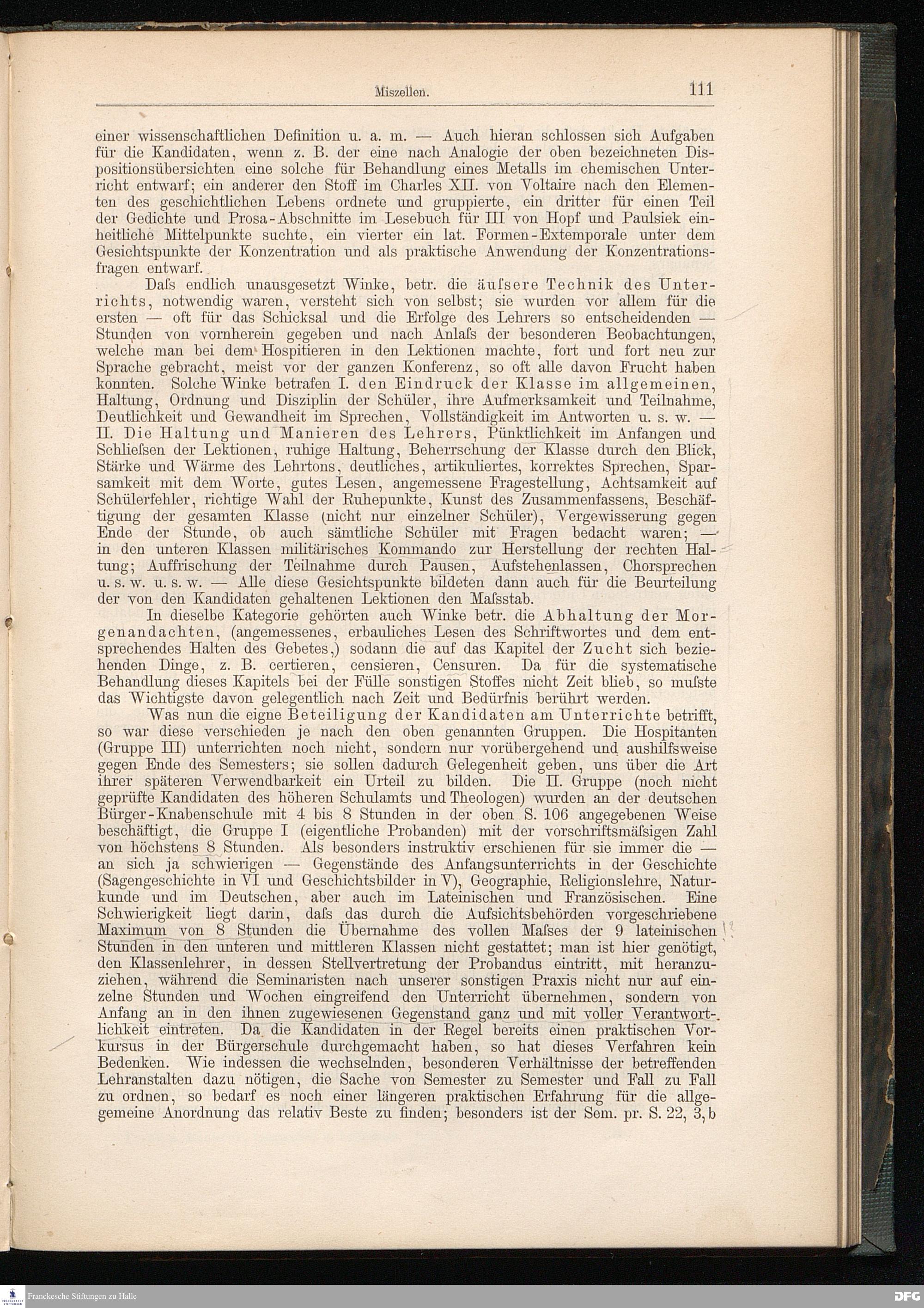 Mitteilungen aus der Arbeit im Seminarium praeceptorum an den Franckeschen Stiftumgem zu Halle (Saale).