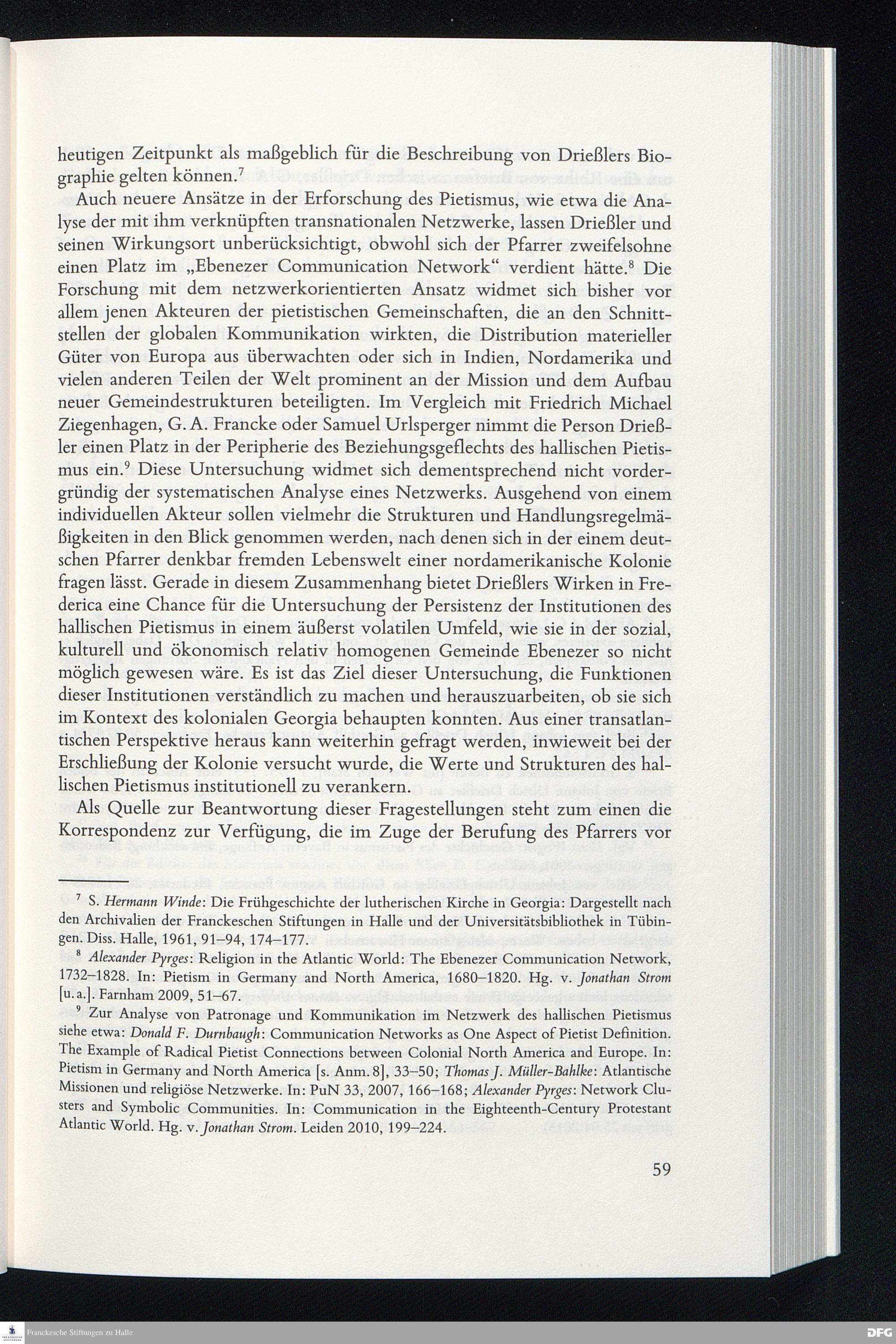 "Alles wie im Waysenhaus": Johann Ulrich Drießler und der hallische Pietismus in Frederica, Georgia.