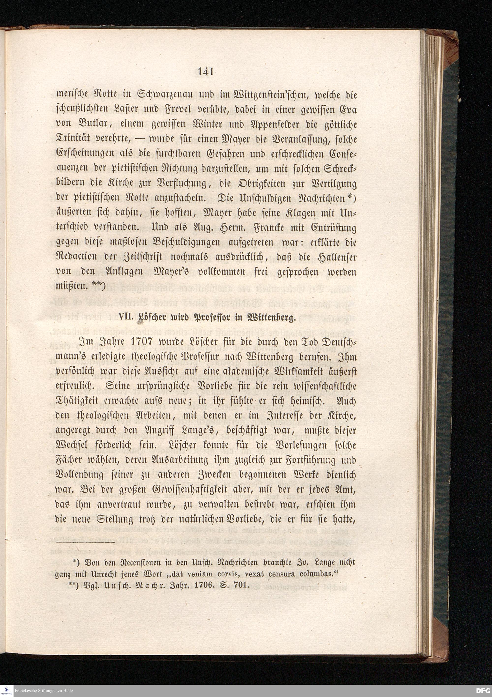 Valentin Ernst Löscher nach seinem Leben und Wirken. Ein geschichtlicher Beitrag zu den Streitfragen über Orthodoxie, Pietismus und Union.