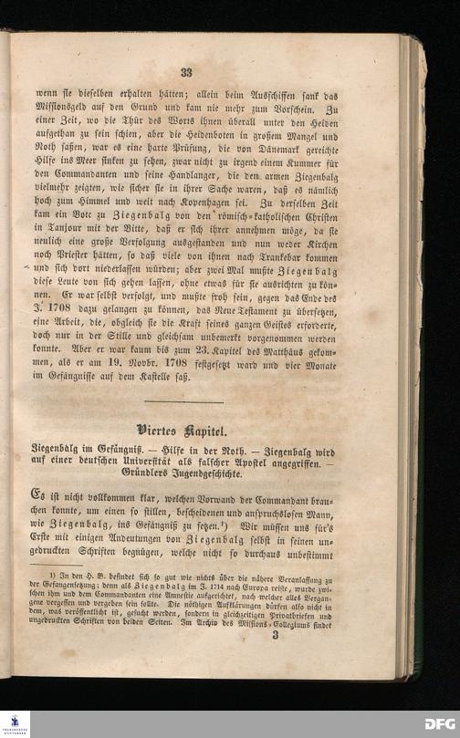 Viertes Kapitel. Ziegenbalg im Gefängnis. - Hilfe in der Noth. - Ziegenbalg wird auf einer deutschen Universität als falscher Apostel angegriffen. - Gründlers Jugendgeschichte.