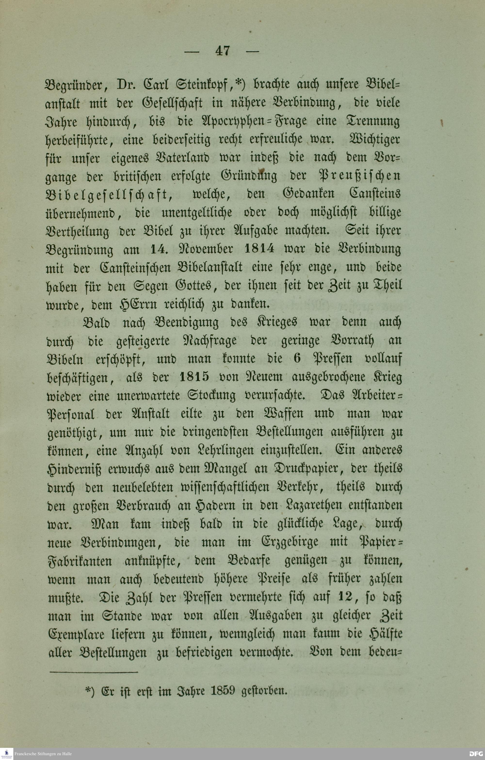 Geschichte der Cansteinschen Bibelanstalt in Halle.