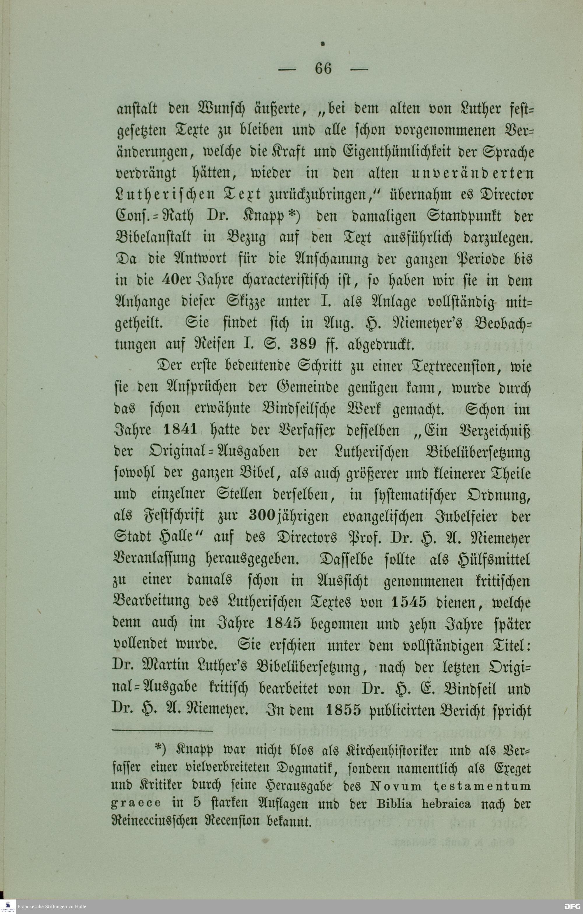 Anlage I, S. 66. Schreiben des Directors Dr. G. C. Knapp an die Preuß. Haupt-Bibelgesellschaft zu Berlin.