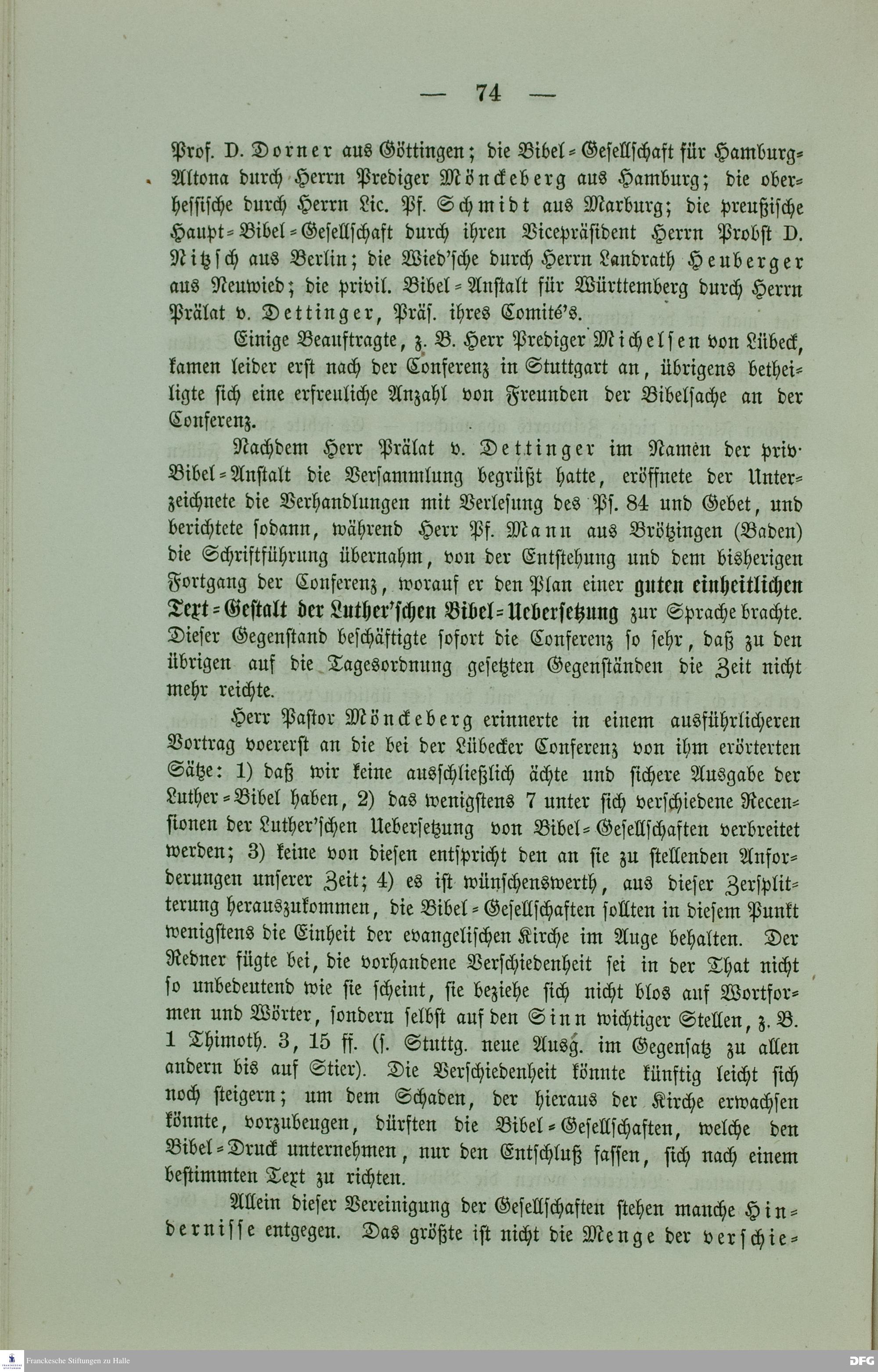 Anlage I, S. 66. Schreiben des Directors Dr. G. C. Knapp an die Preuß. Haupt-Bibelgesellschaft zu Berlin.
