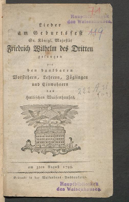 Lieder am Geburtstagsfest Sr. Königl. Majestät Friedrich Wilhelm des Dritten gesungen ... am 3ten August 1799.