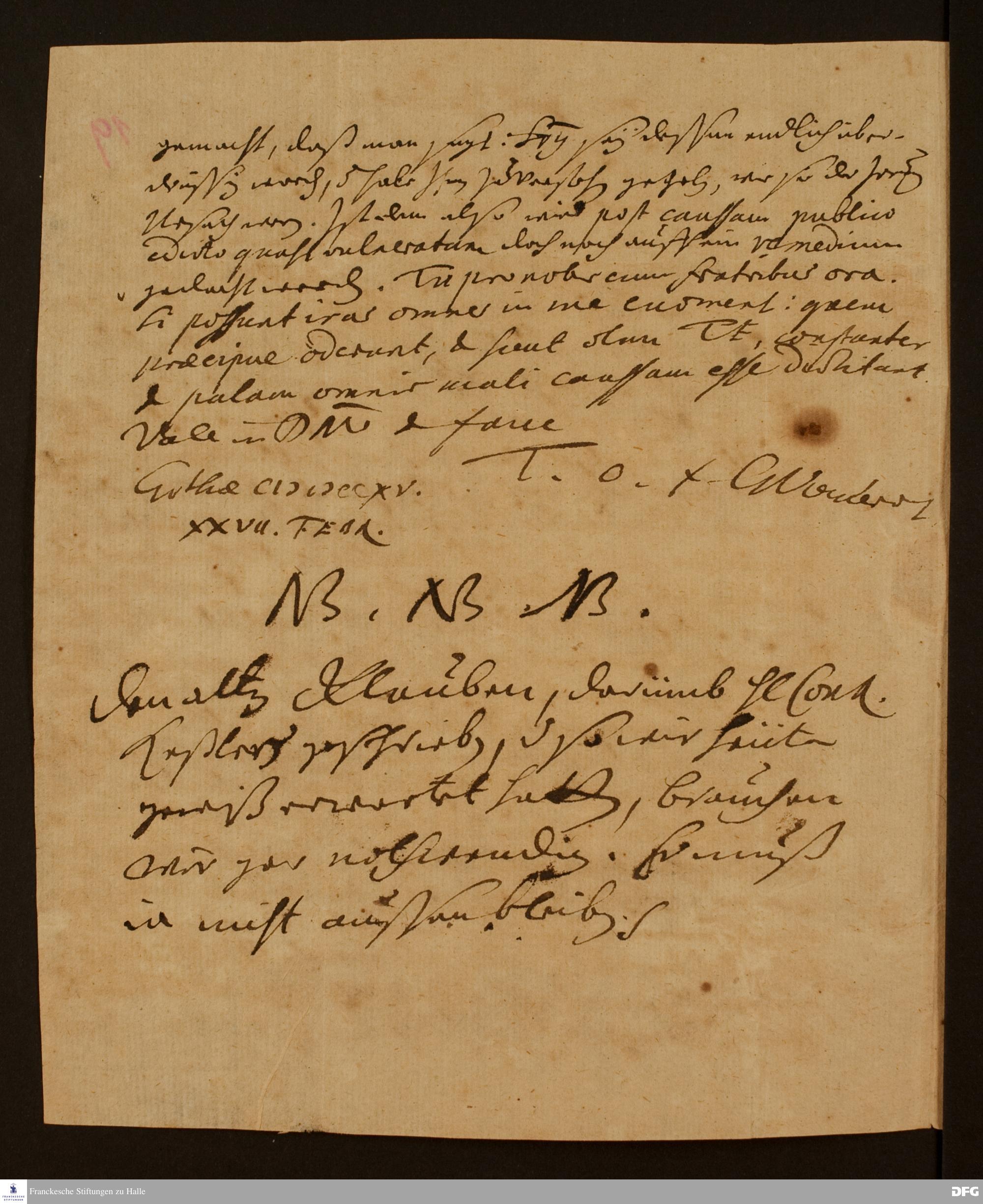 Brief von Gottfried Vockerodt an Johann Hieronymus Wiegleb.