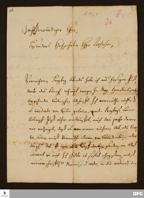 Brief von Christoph Andreas Schubart an August Hermann Francke.