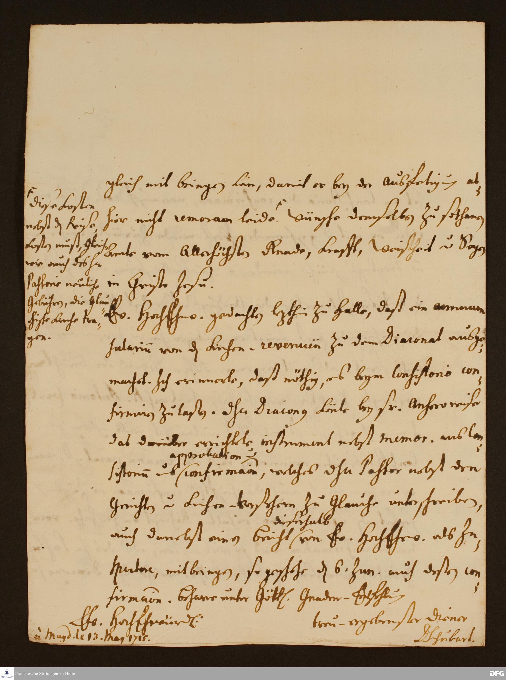 Brief von Christoph Andreas Schubart an August Hermann Francke.