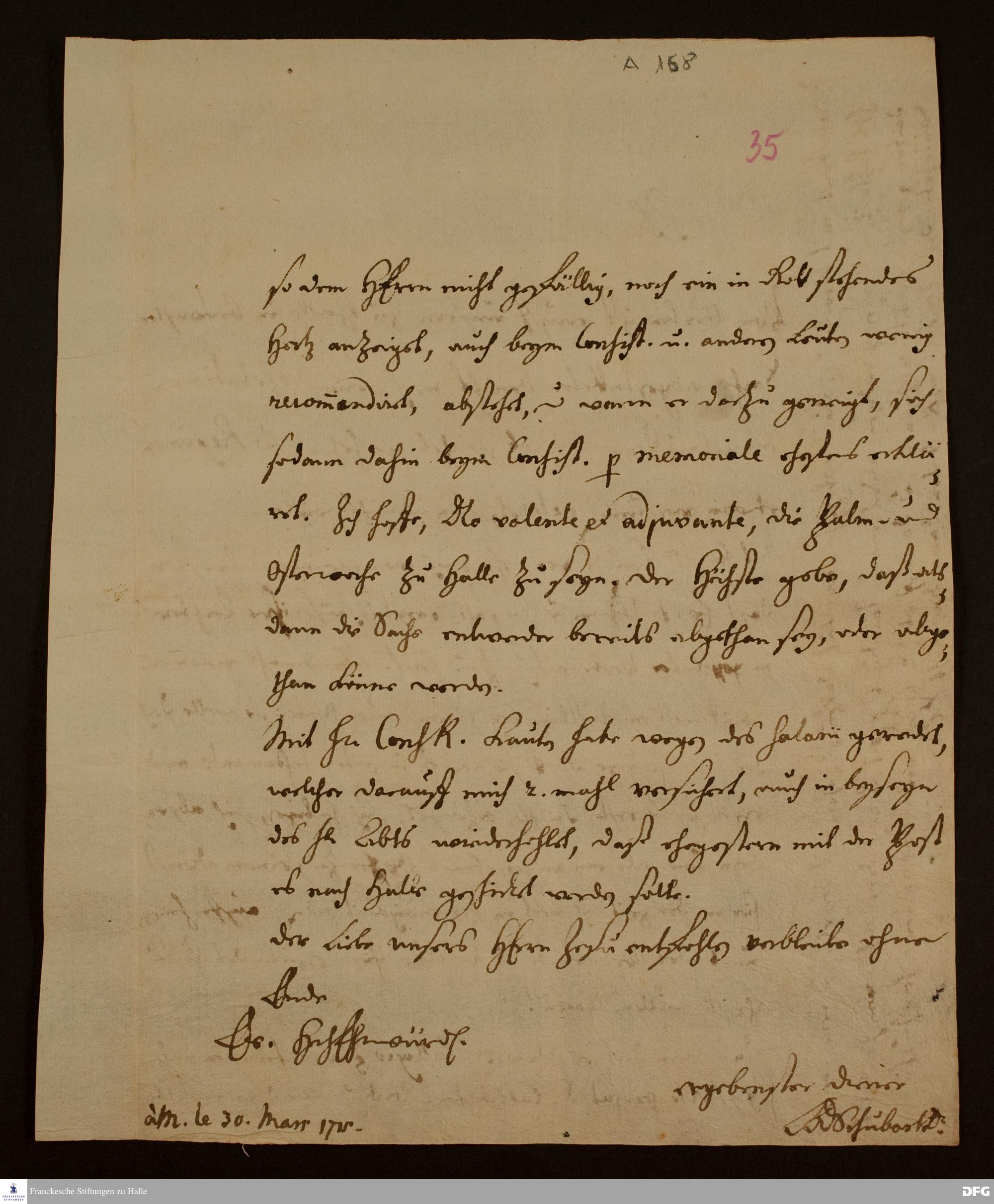 Brief von Christoph Andreas Schubart an August Hermann Francke.