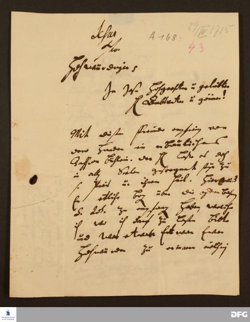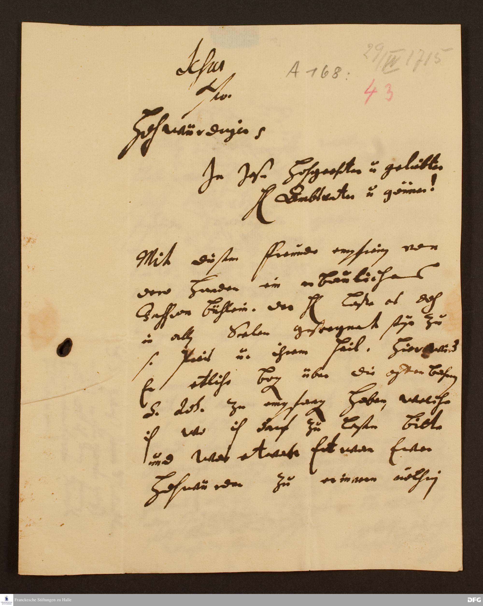 Brief von Johann Christoph Schwedler an August Hermann Francke.
