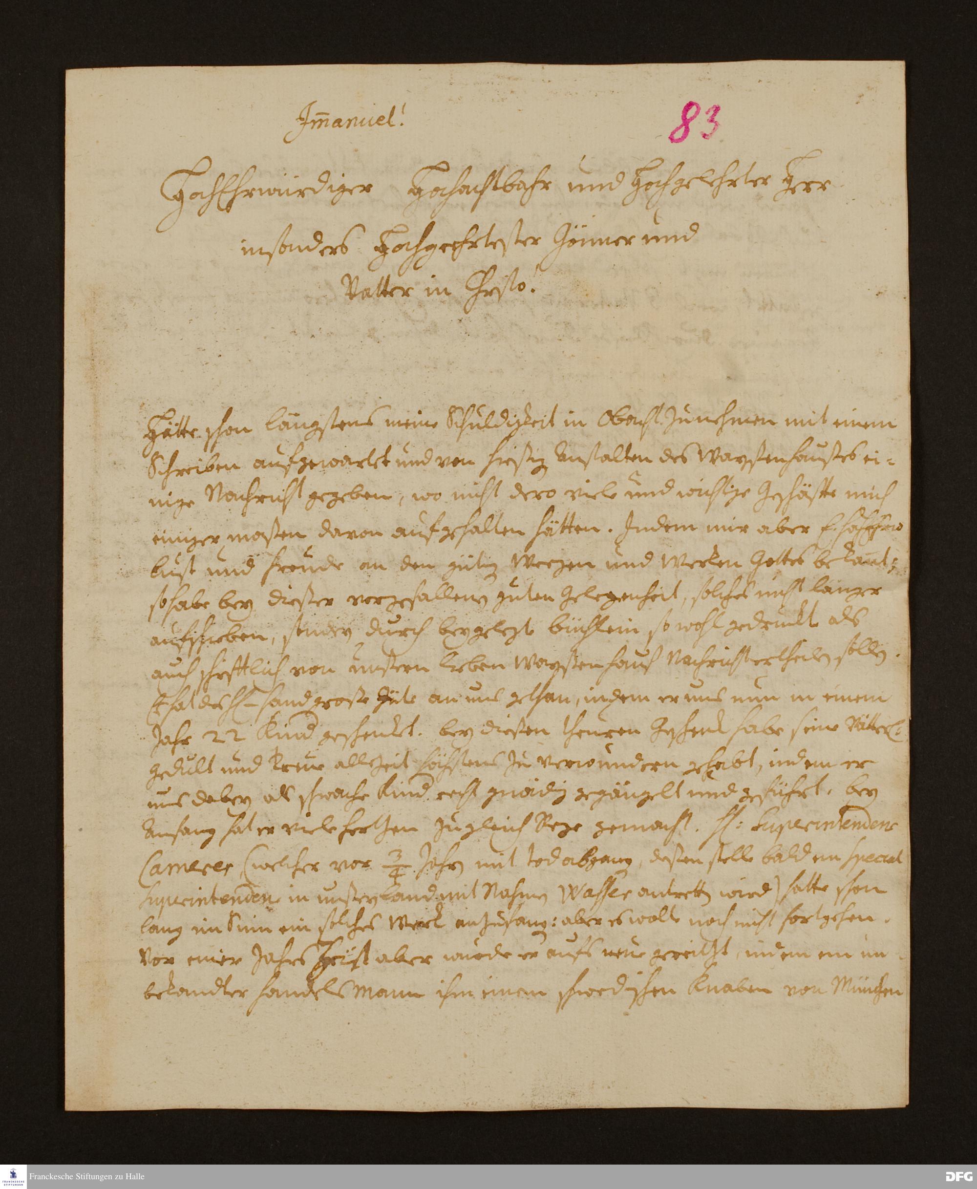 Brief von Johann Ulrich Wolfgang Reußner an August Hermann Francke.