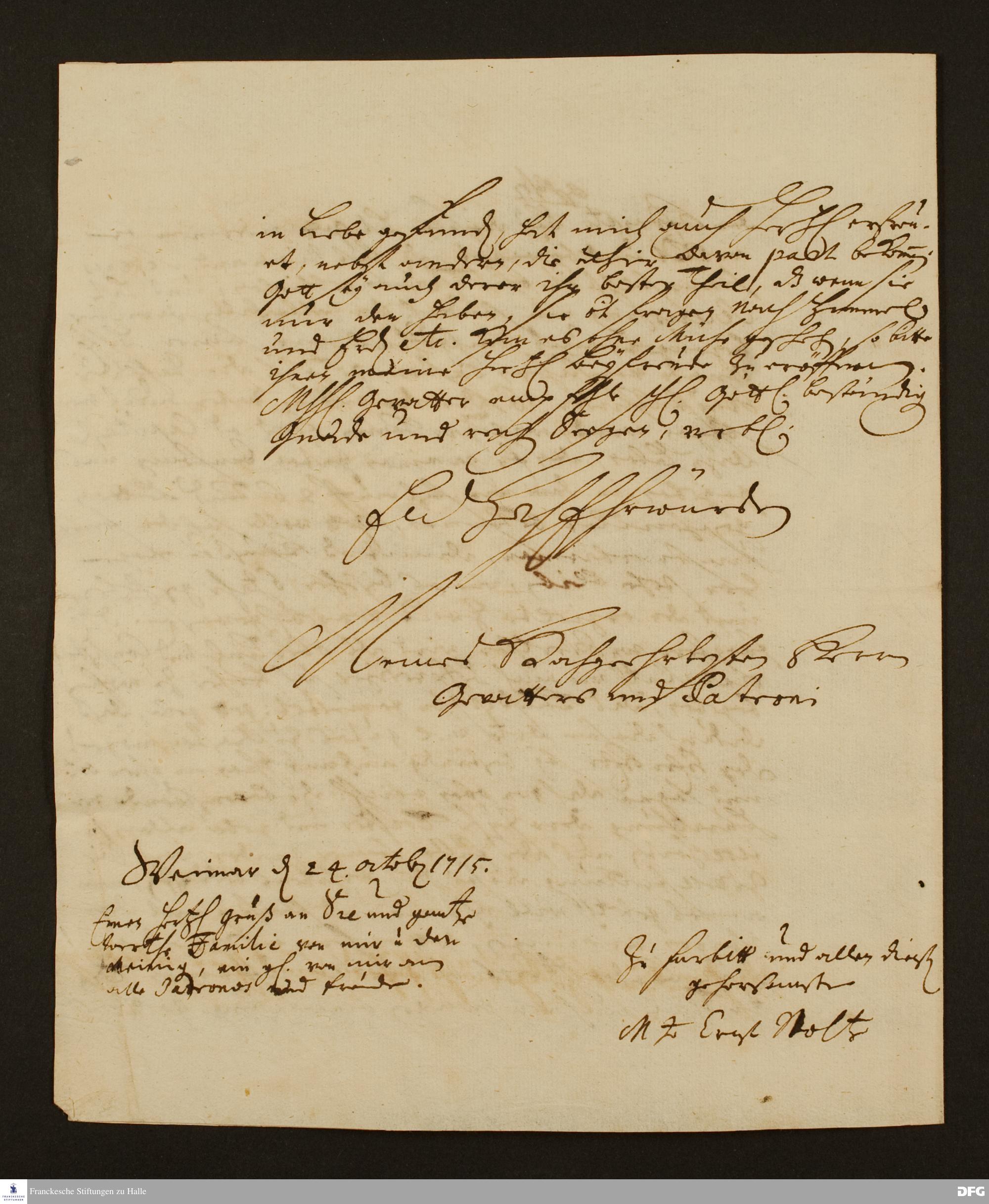 Brief Johann Ernst Stolte an August Hermann Francke.