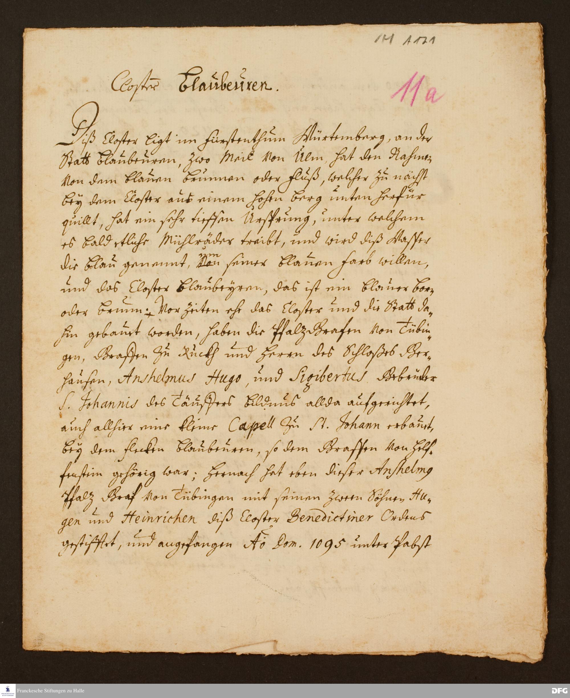 Darstellung der Geschichte mit Nennung der Äbte des Klosters Blaubeuren.