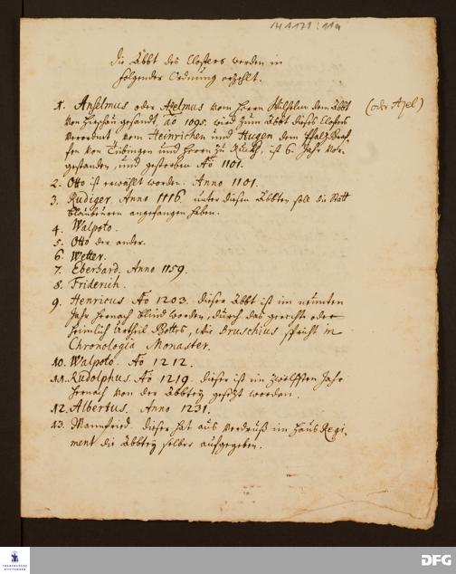 Darstellung der Geschichte mit Nennung der Äbte des Klosters Blaubeuren.