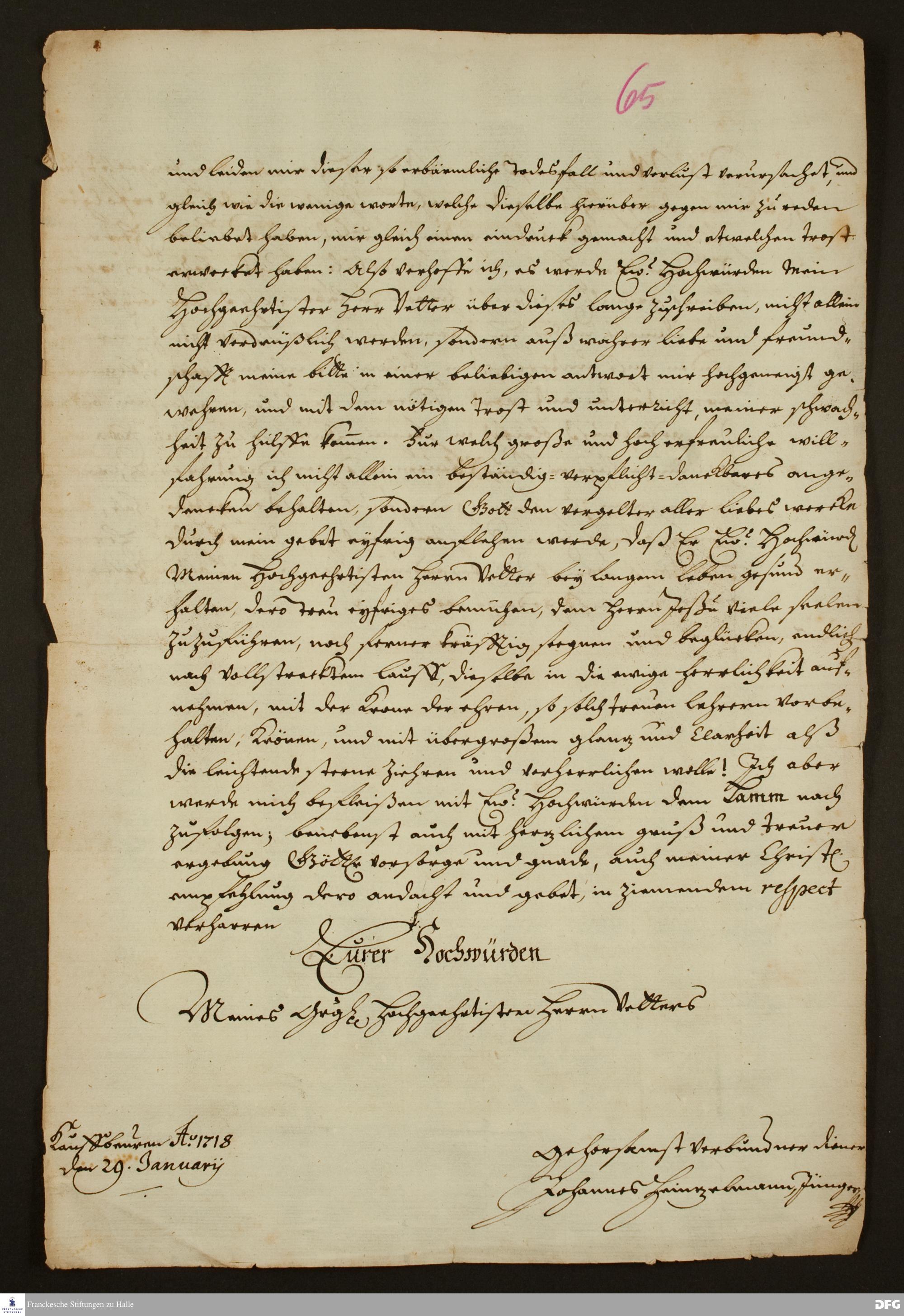 Brief von Johannes Heinzelmann an August Hermann Francke.
