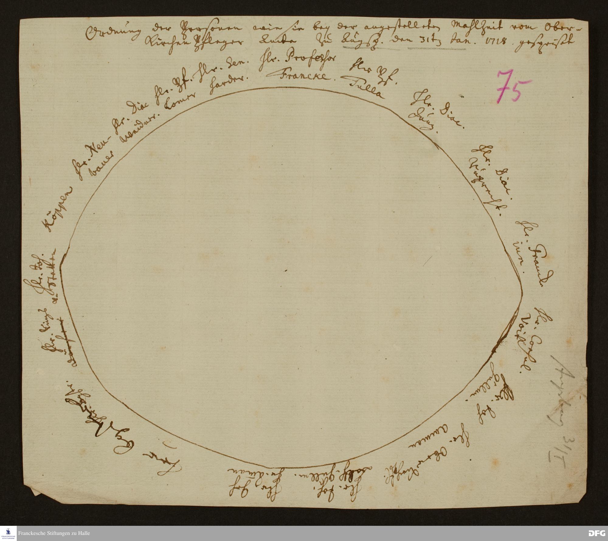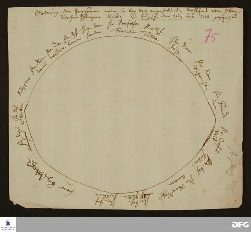 Sitzordnung bei dem zu Ehren A. H. Franckes vom evangelischen Oberkirchenamt und Ministerium Augsburg gegebenen Mittagessen.