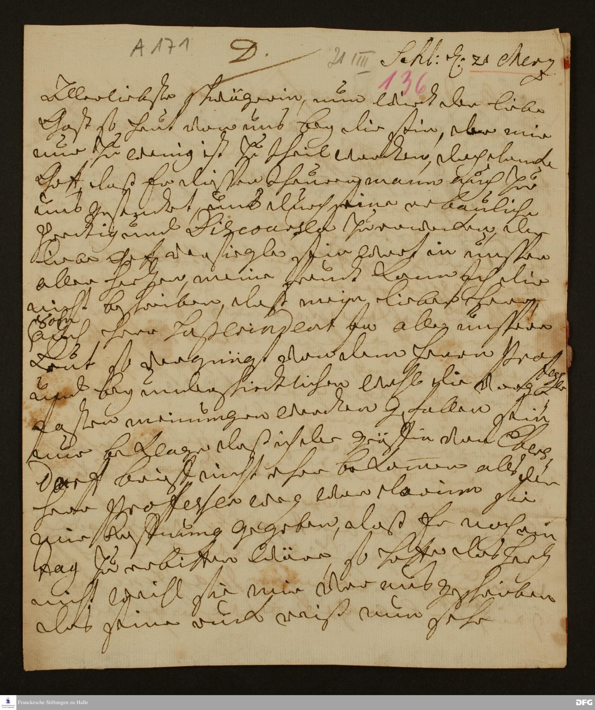Brief von Auguste Dorothea v. Reuß-Schleiz an Maria Eleonore Emilia v. Reuß-Köstritz.