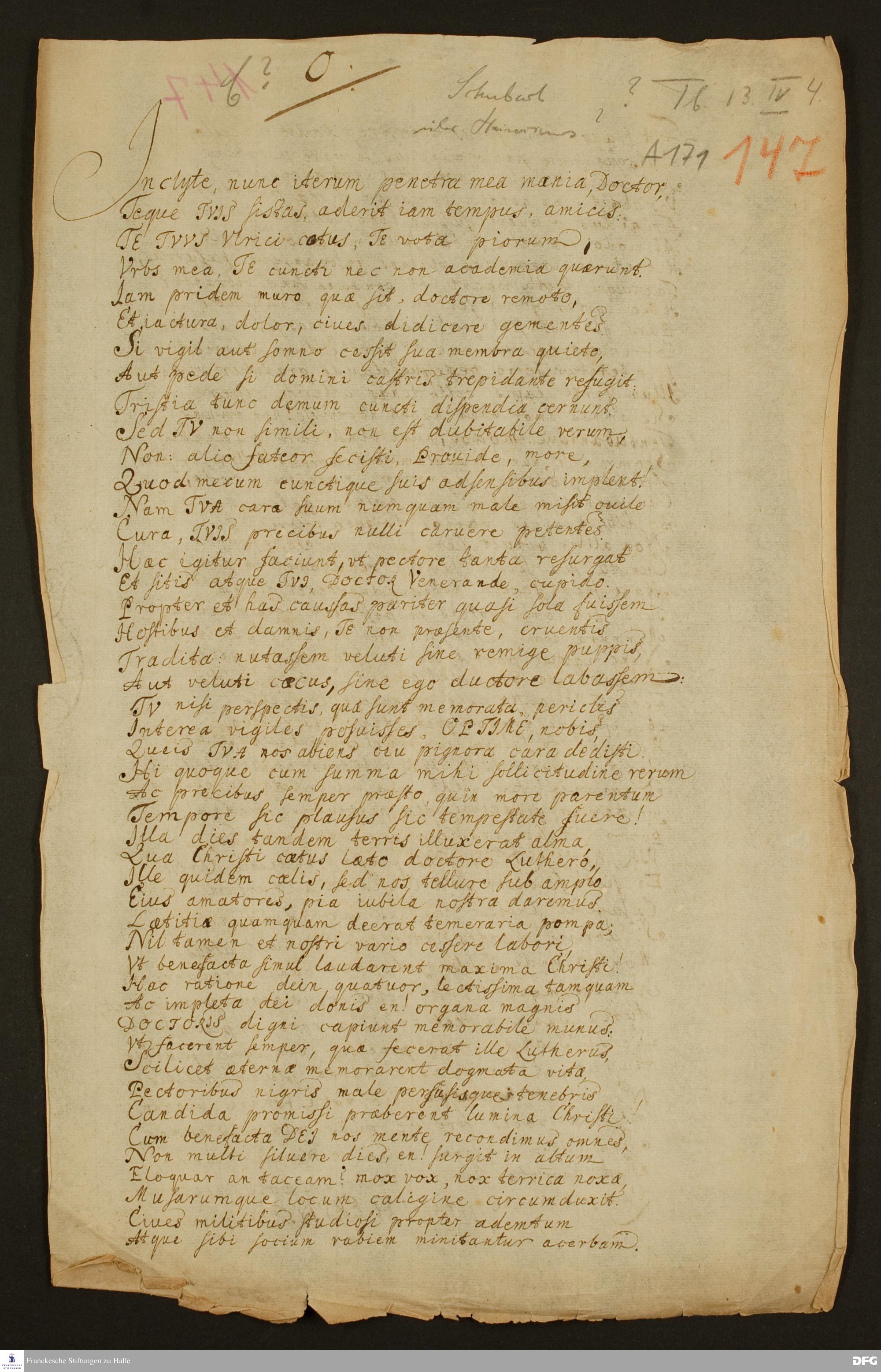 [Bericht von Andreas Christoph Schubart über Johann Michael Heineccius ?]