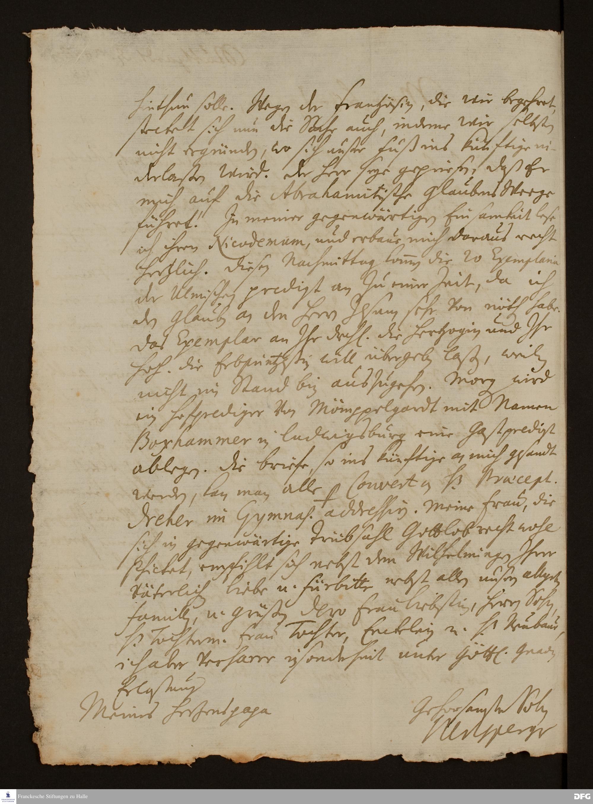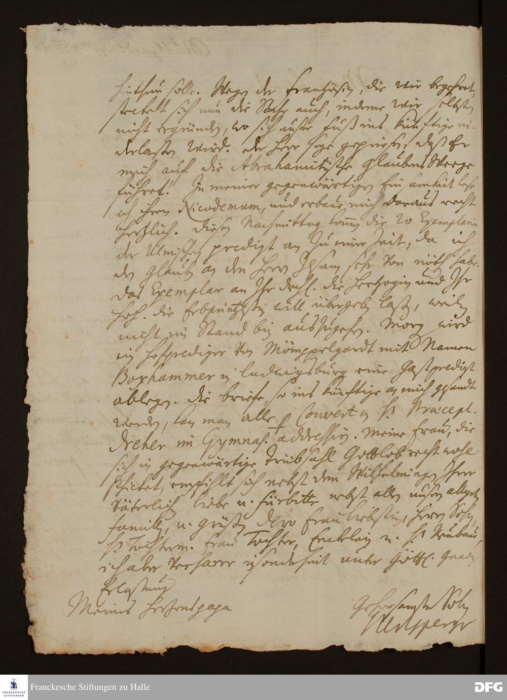 Brief von Samuel Urlsperger an August Hermann Francke.