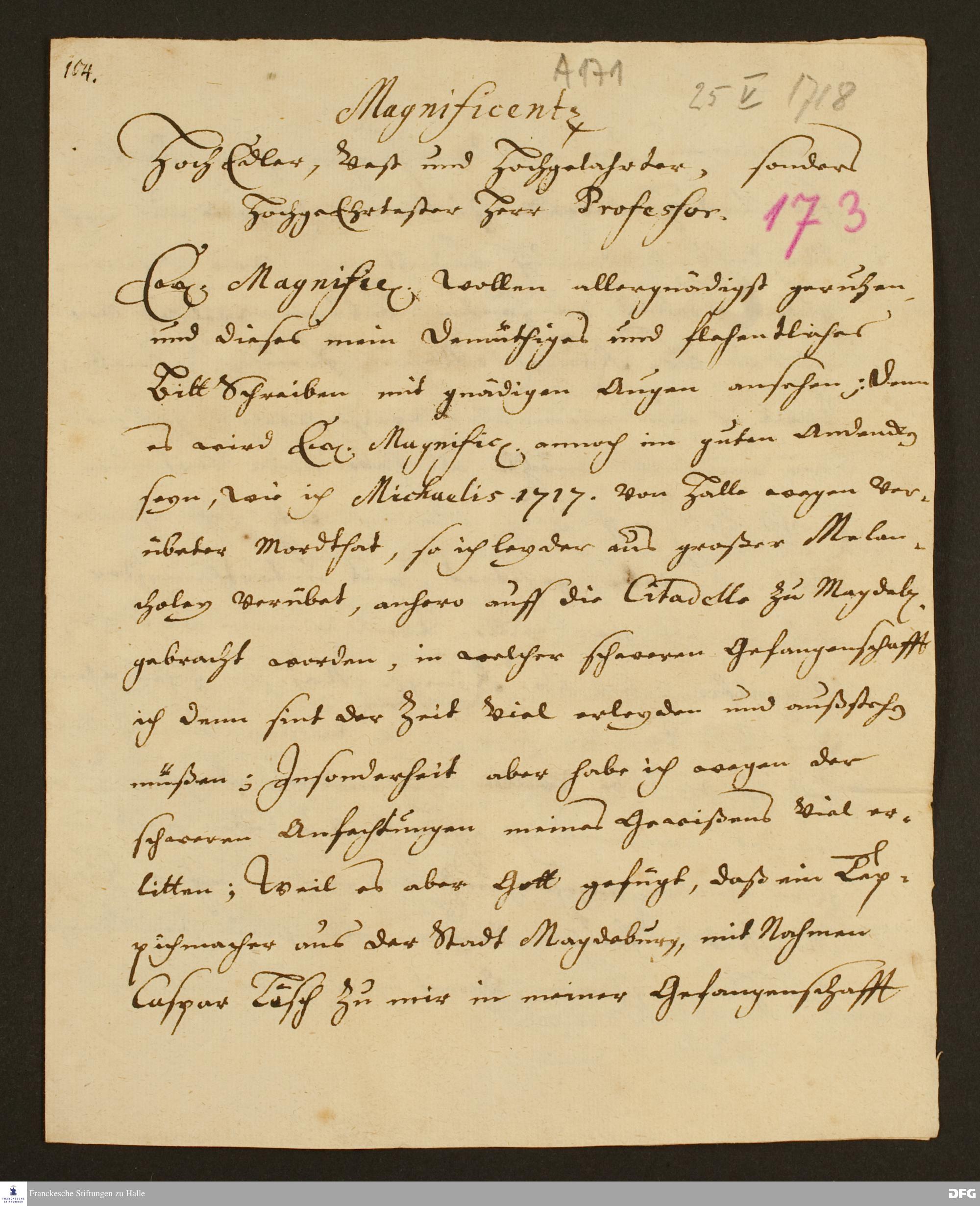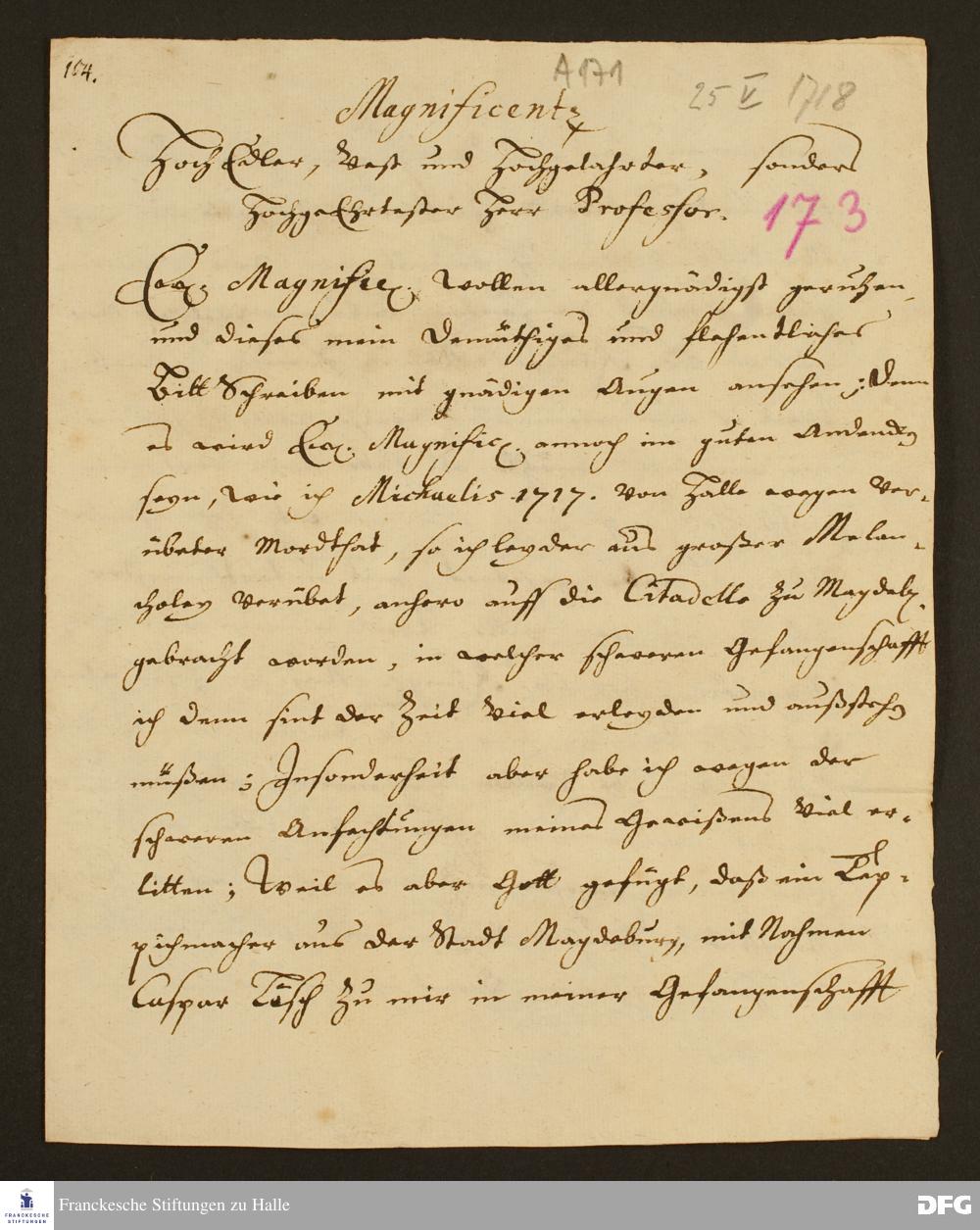 Brief von Gottlob Riemer an August Hermann Francke.