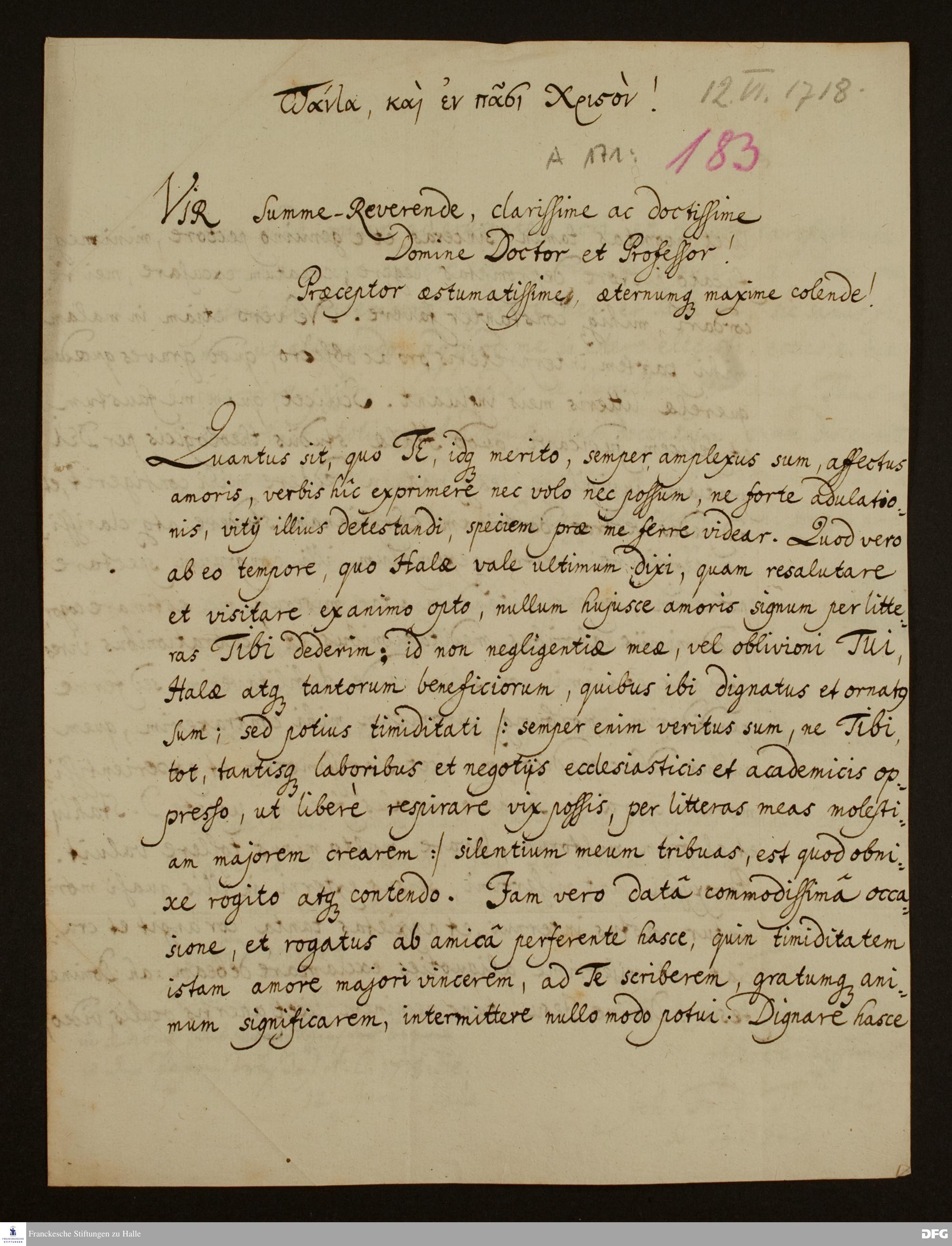 Brief von Johann Friedrich Thüsel an August Hermann Francke.