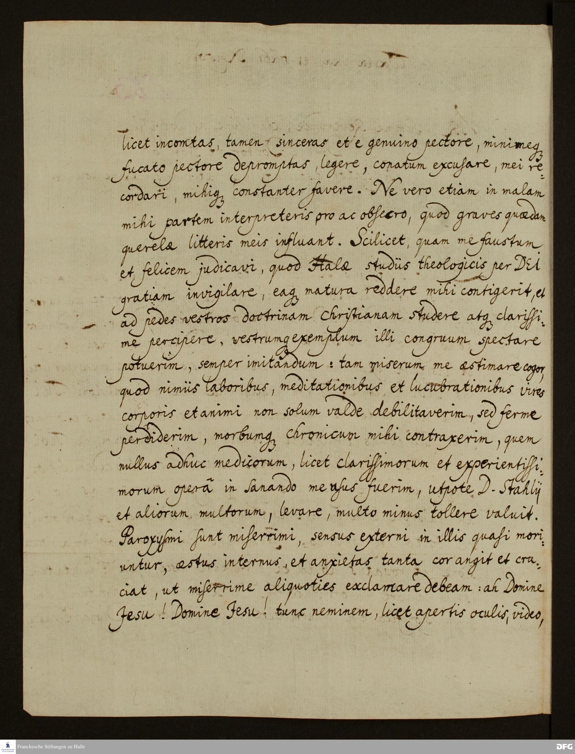 Brief von Johann Friedrich Thüsel an August Hermann Francke.