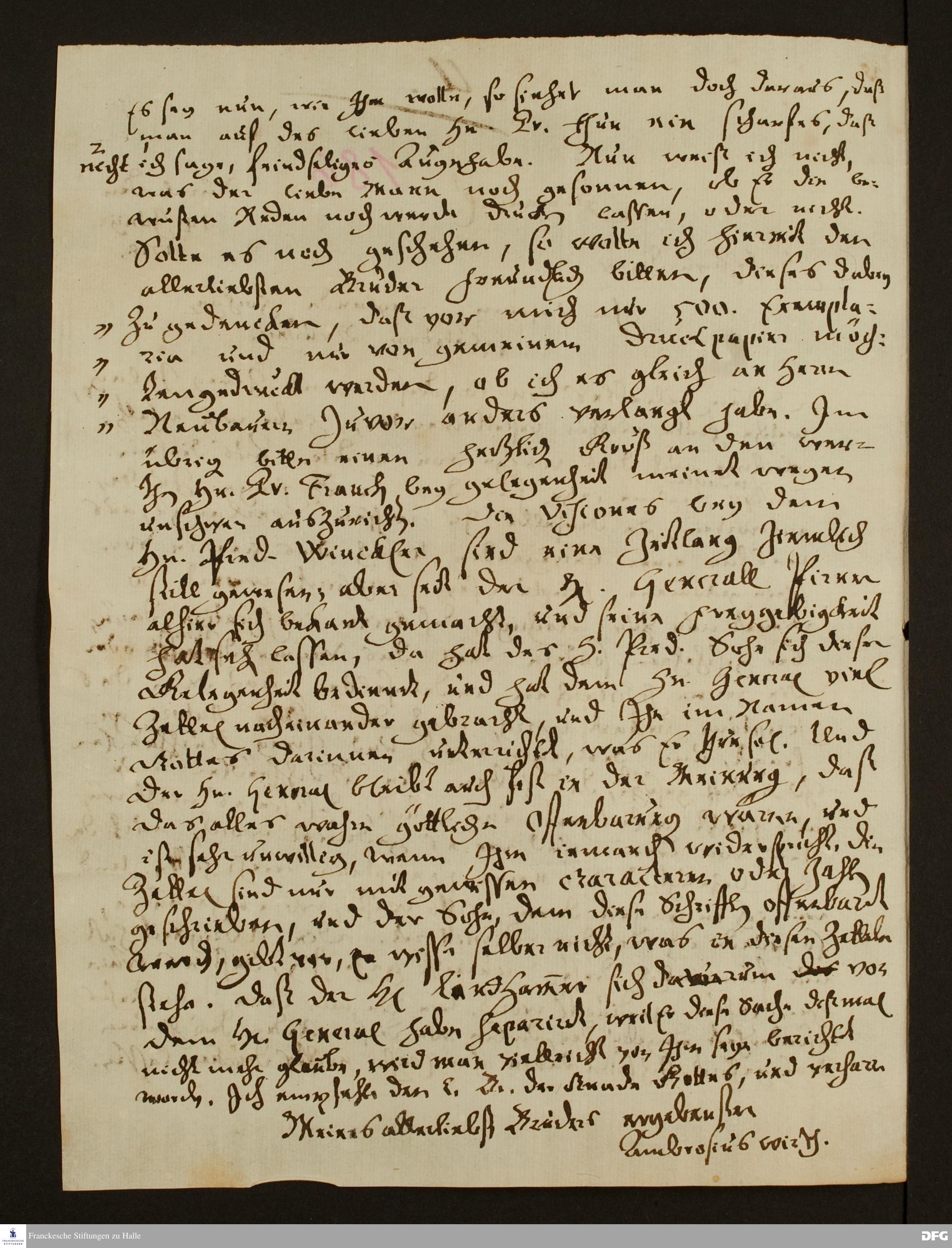Brief von Ambrosius Wirth an Johann Daniel Herrnschmidt.