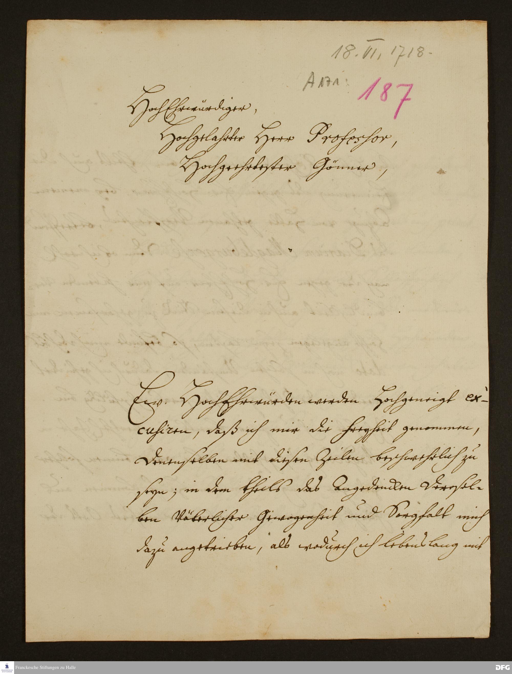 Brief von David Heinrich Rotermund an August Hermann Francke.