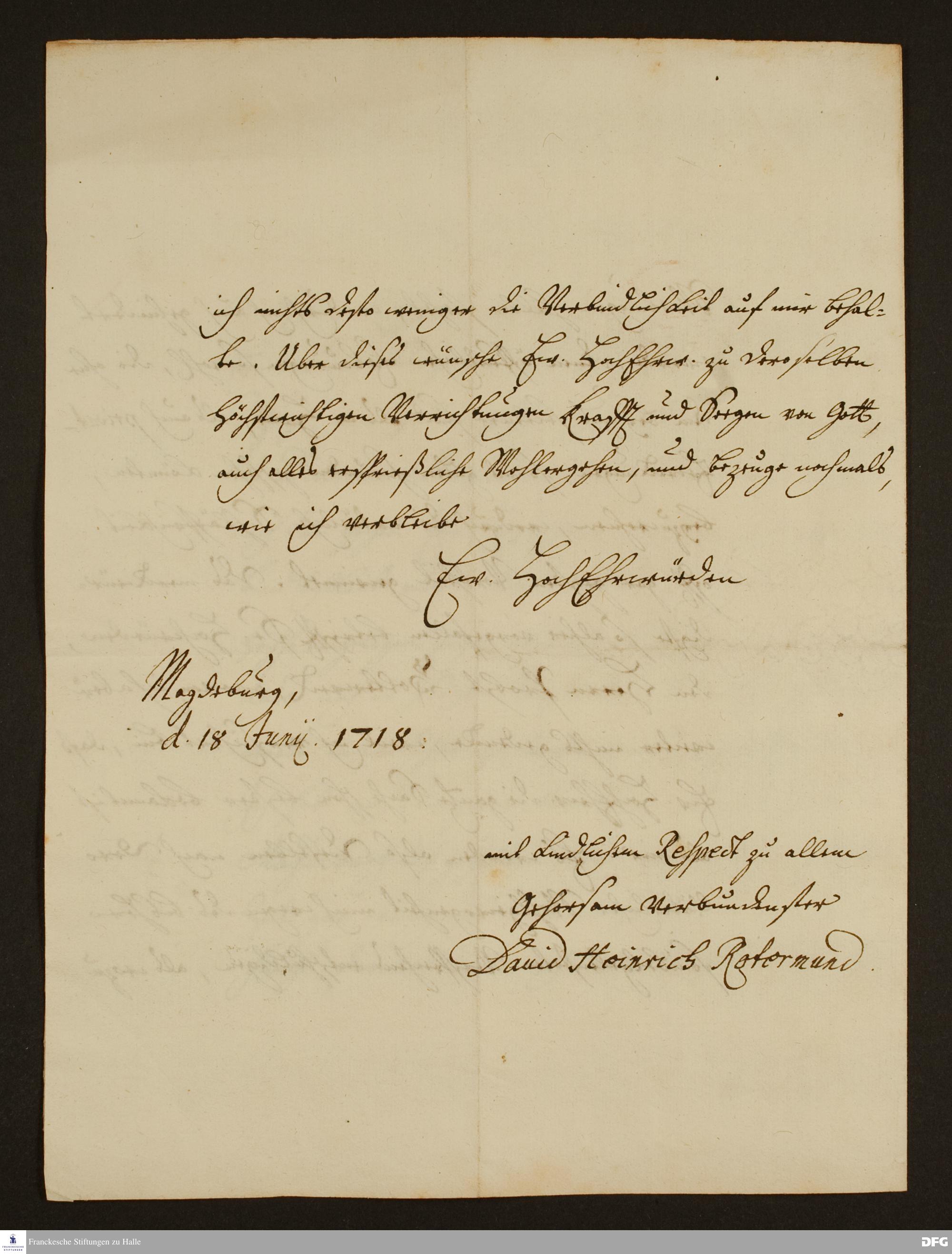 Brief von David Heinrich Rotermund an August Hermann Francke.