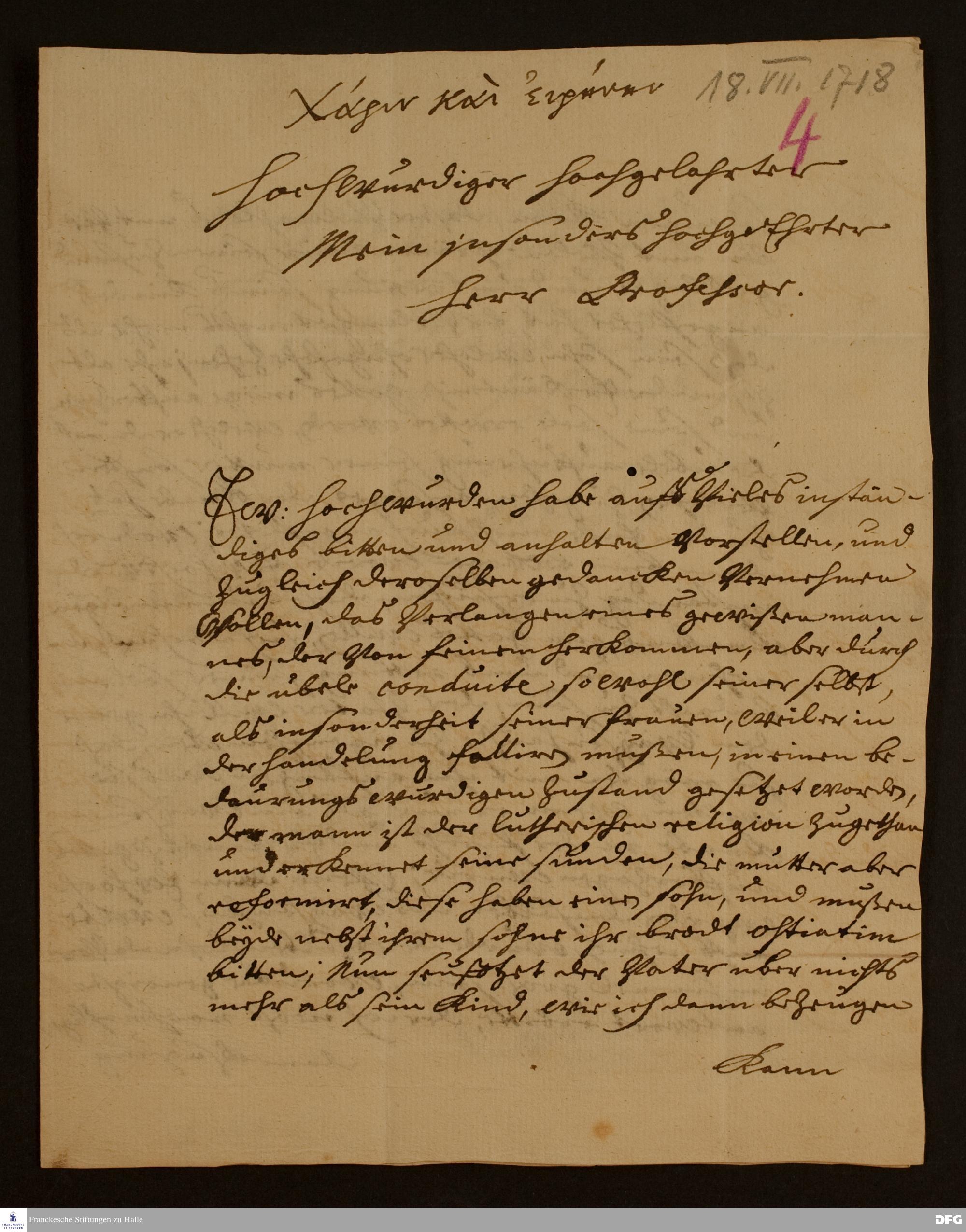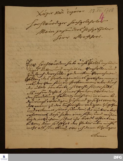 Brief von Johann Alexander Syberberg an August Hermann Francke.