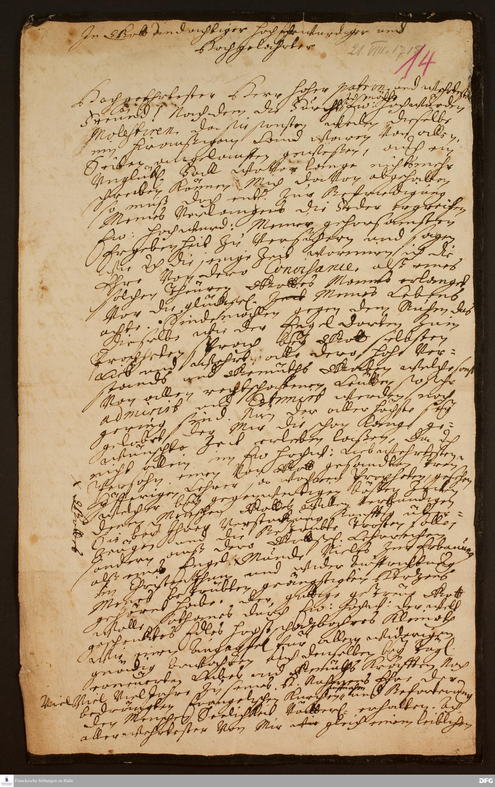 Brief von Sophia Eleonora von Limburg an August Hermann Francke.
