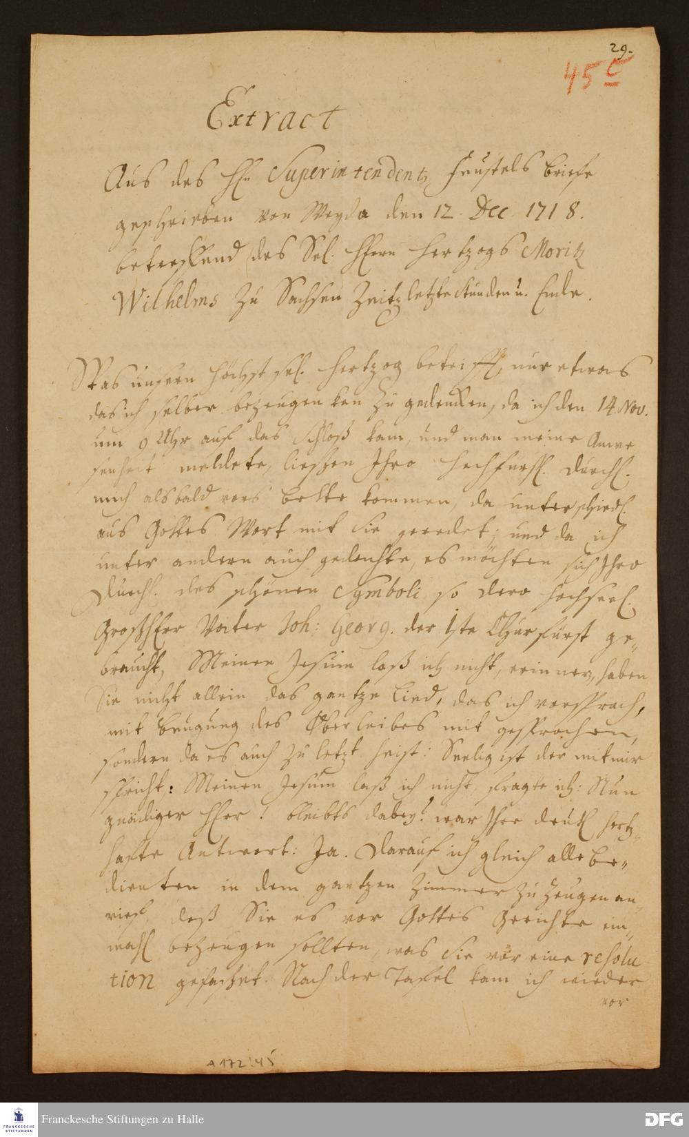 Auszug eines Briefes von Christian Feustel an Heinrich Schubert.