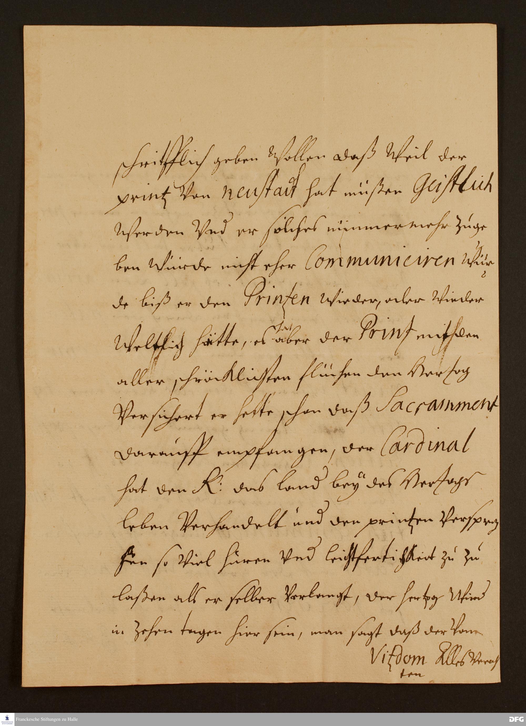 Brief von Maria Amalia v. Sachsen-Zeitz an August Hermann Francke.