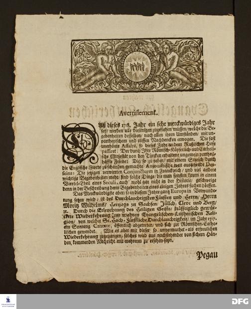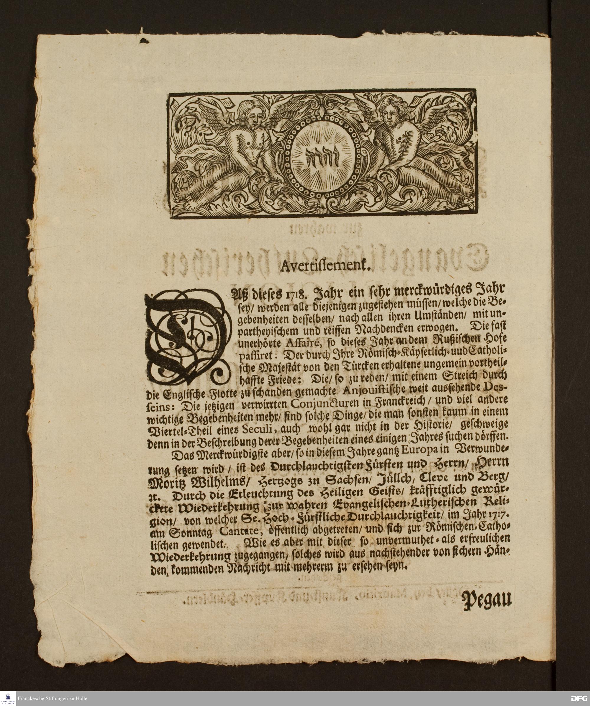 Die durch den Trieb des heiligen Geistes gewürckte Wiederkehrung zur wahren evangelisch-lutherischen Religion des durchlauchtigsten Fürsten und Herrn, Hn. Moritz Wilhelms, Hertzog zu Sachsen [...].