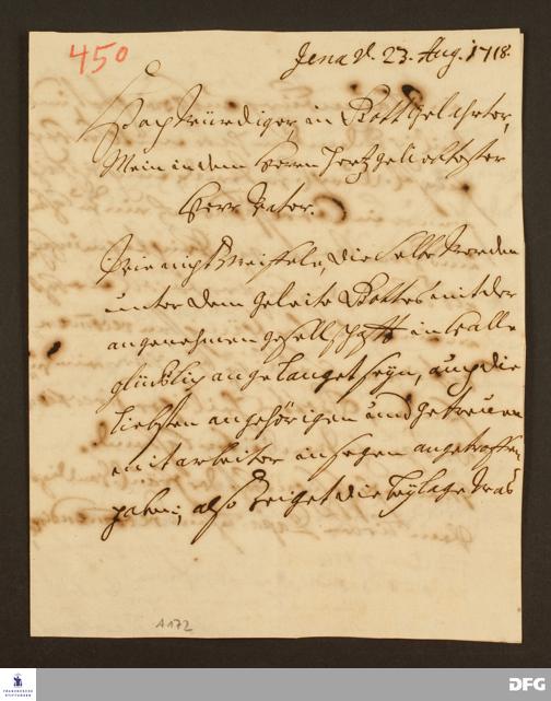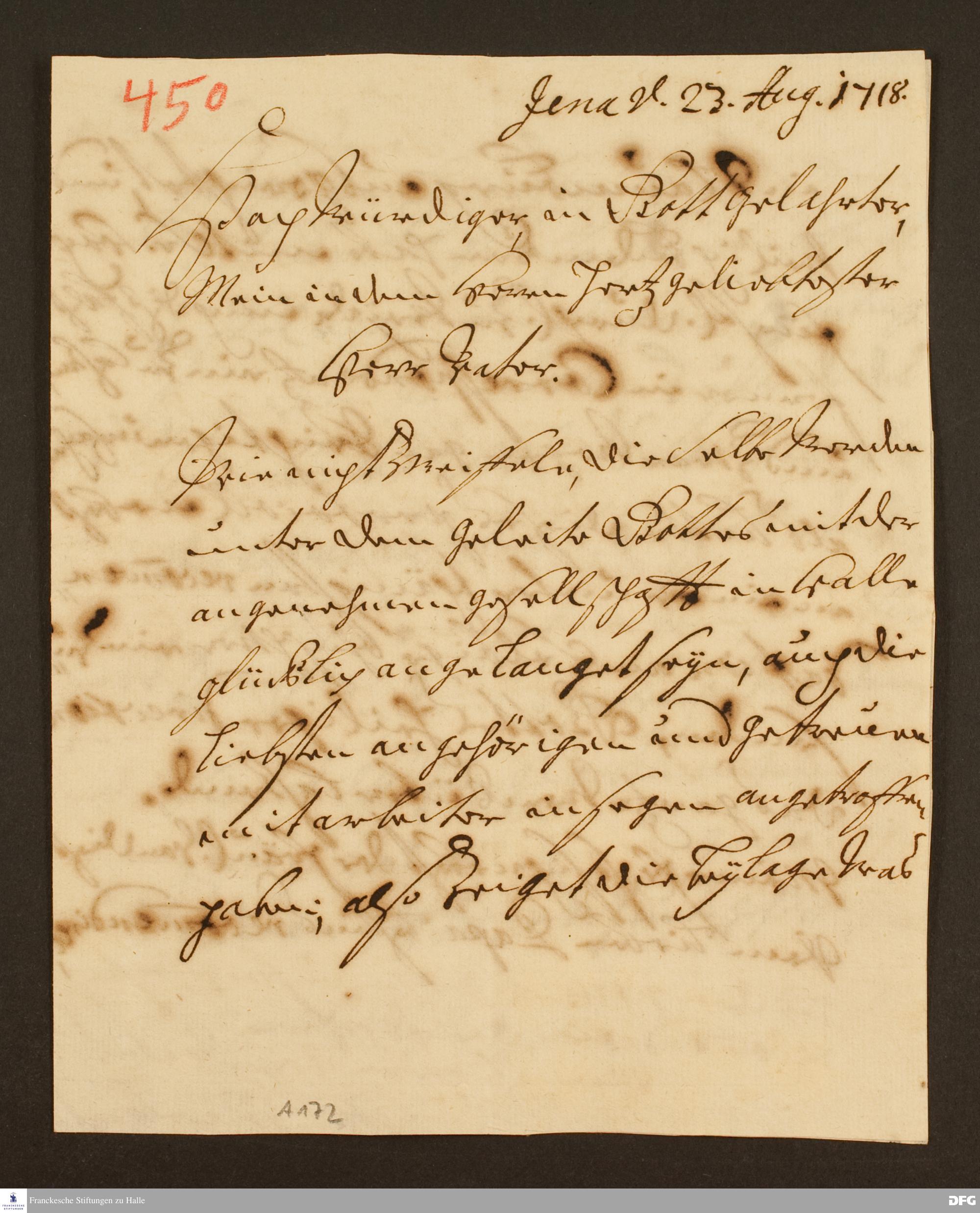 Brief von Johann Heinrich v. Griesheim an August Hermann Francke.