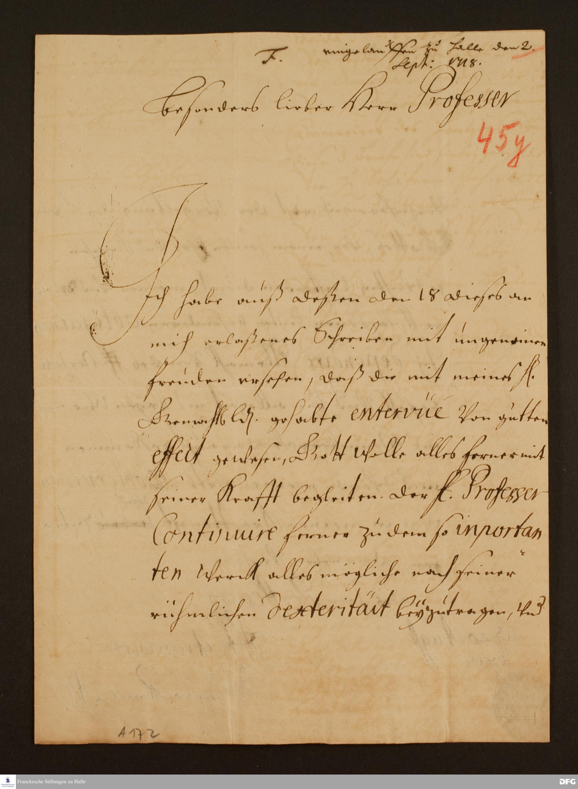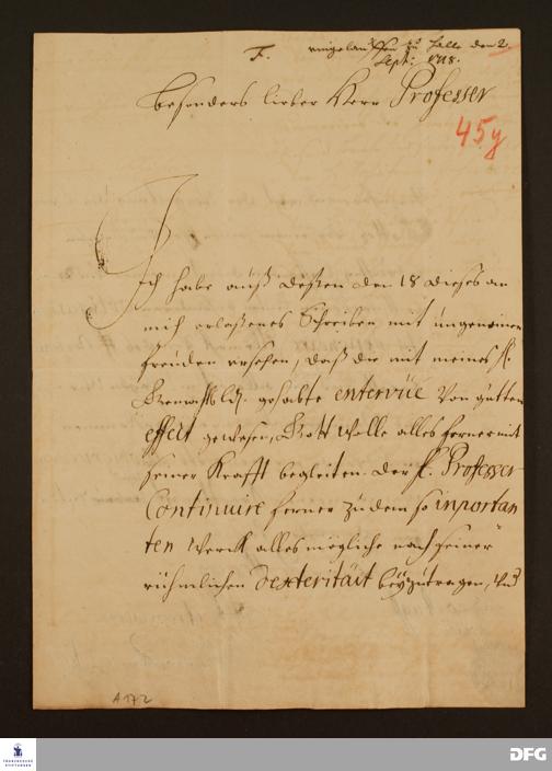 Brief von Maria Amalia v. Sachsen-Zeitz an August Hermann Francke.