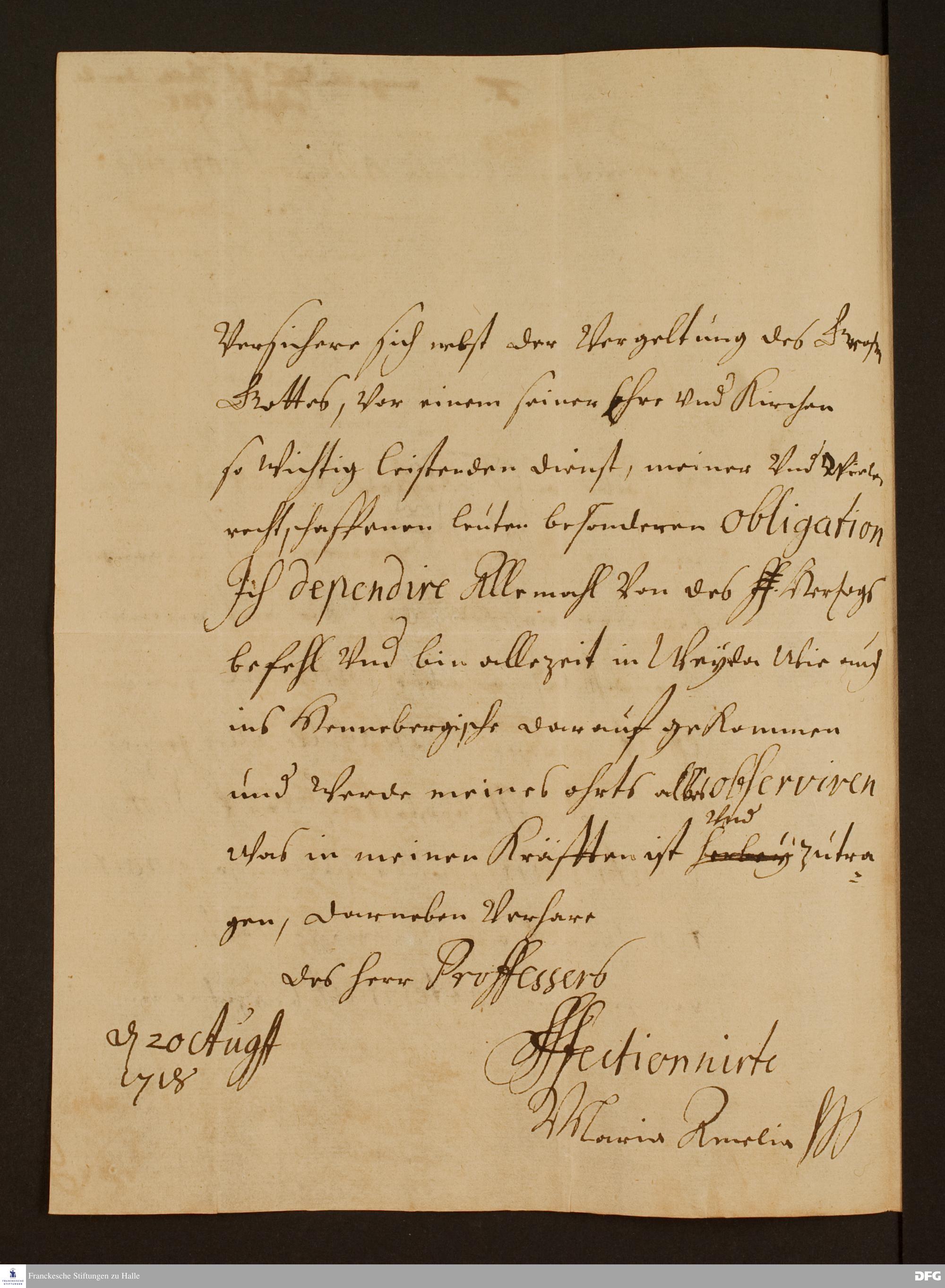 Brief von Maria Amalia v. Sachsen-Zeitz an August Hermann Francke.