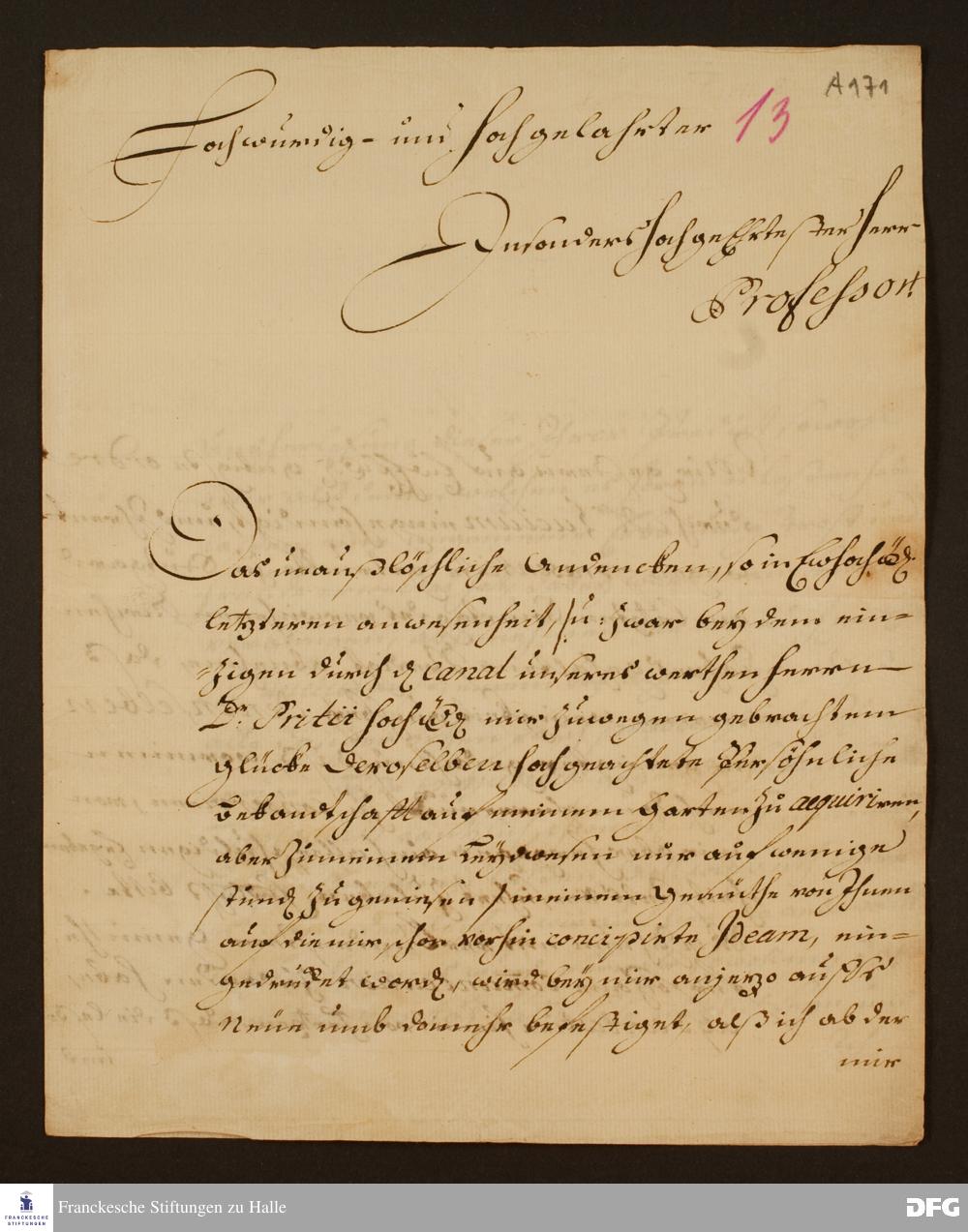 Brief von Heinrich Bartels an August Hermann Francke.