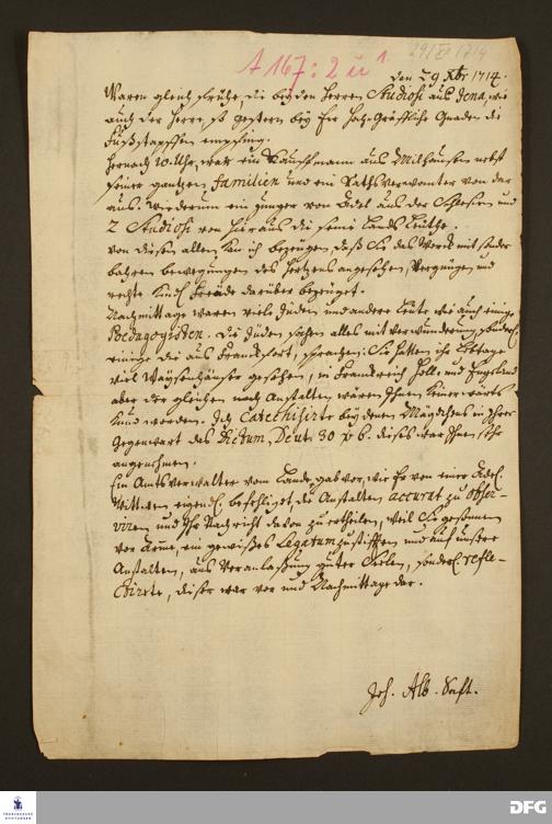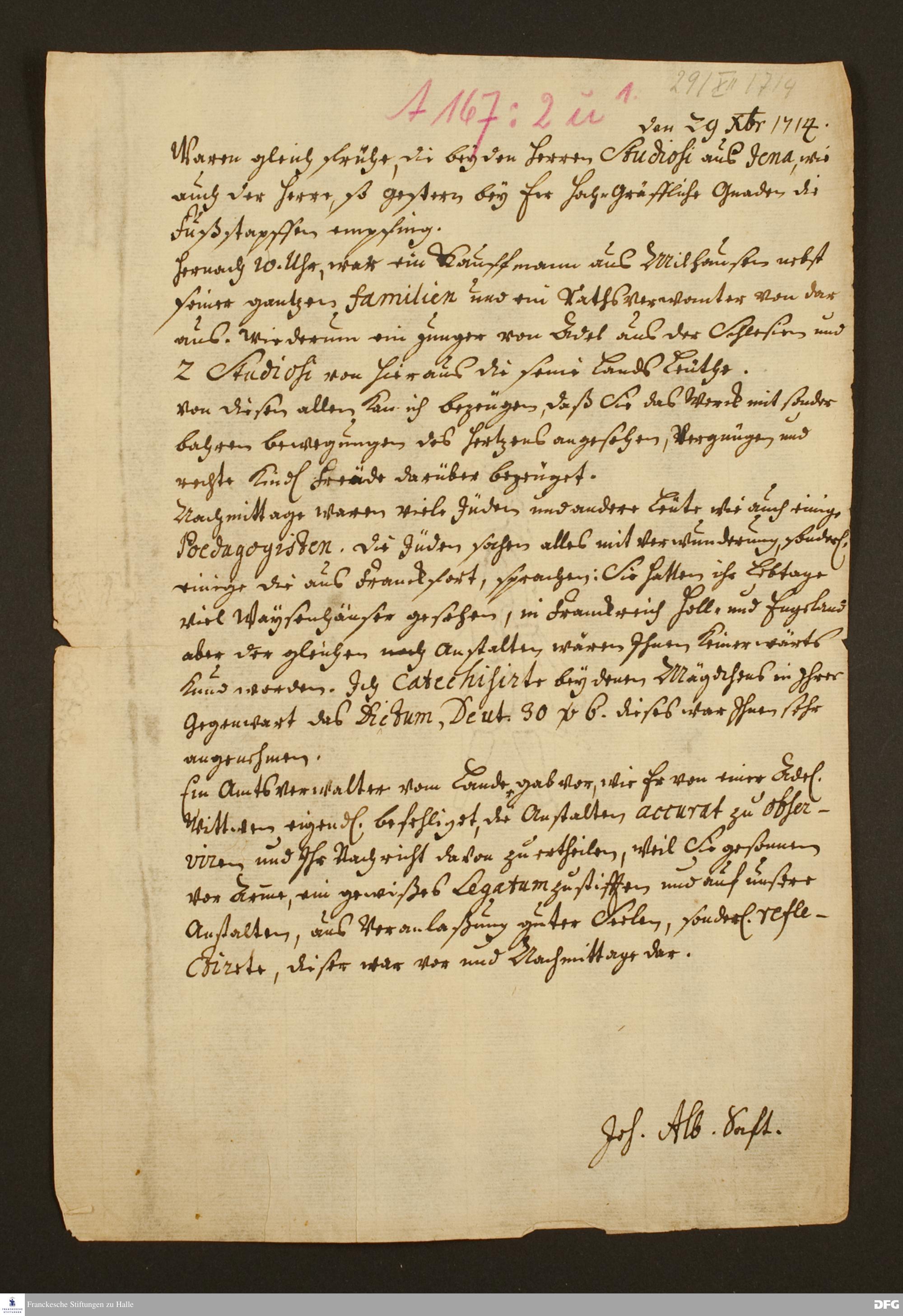 Protokoll von Johann Albert Saft über Besucher in den Franckeschen Stiftungen.
