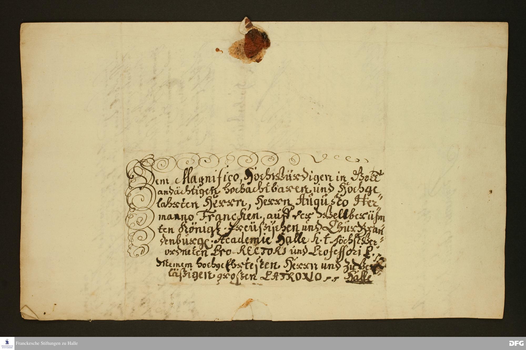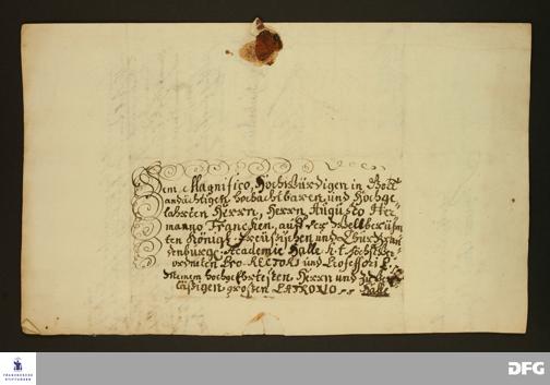Brief von Benjamin Christoph Schreiber an August Hermann Francke.