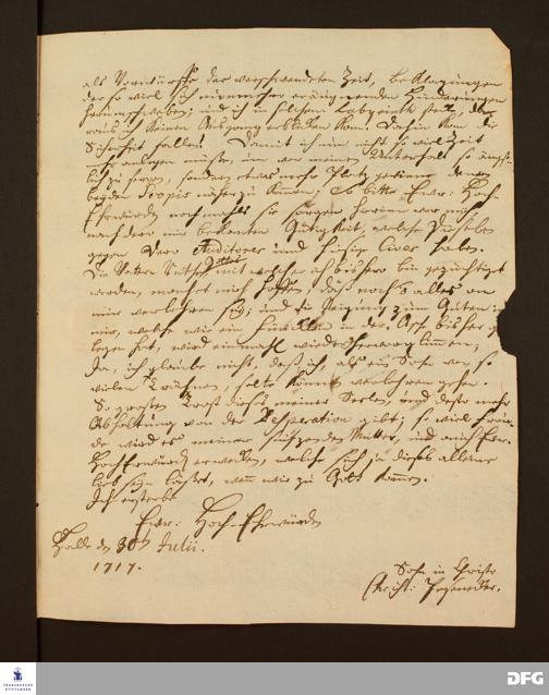 Brief von Christian Pesenecker an August Hermann Francke.