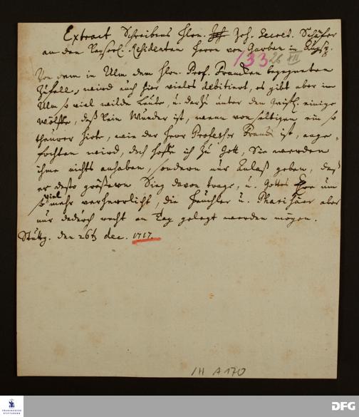 Auszug eines Briefs von Jakob Schäfer an Jakob Emanuel v. Garben.