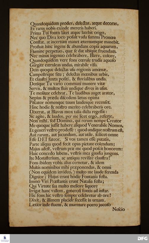 Carmen der Schüler des Klosters Blaubeuren zum 70. Geburtstag von Johann Wendel Bülfinger.