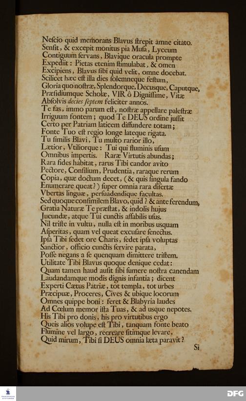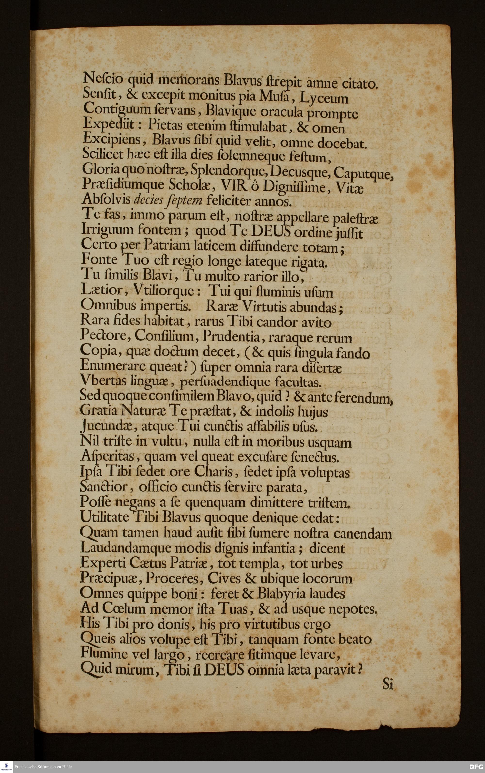 Carmen der Schüler des Klosters Blaubeuren zum 70. Geburtstag von Johann Wendel Bülfinger.